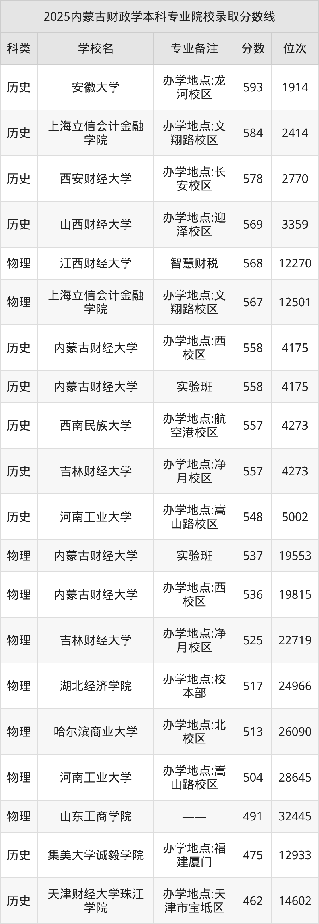 2025年內(nèi)蒙古財(cái)政學(xué)分?jǐn)?shù)線排名前5的大學(xué)名單(本科最難報(bào)考):