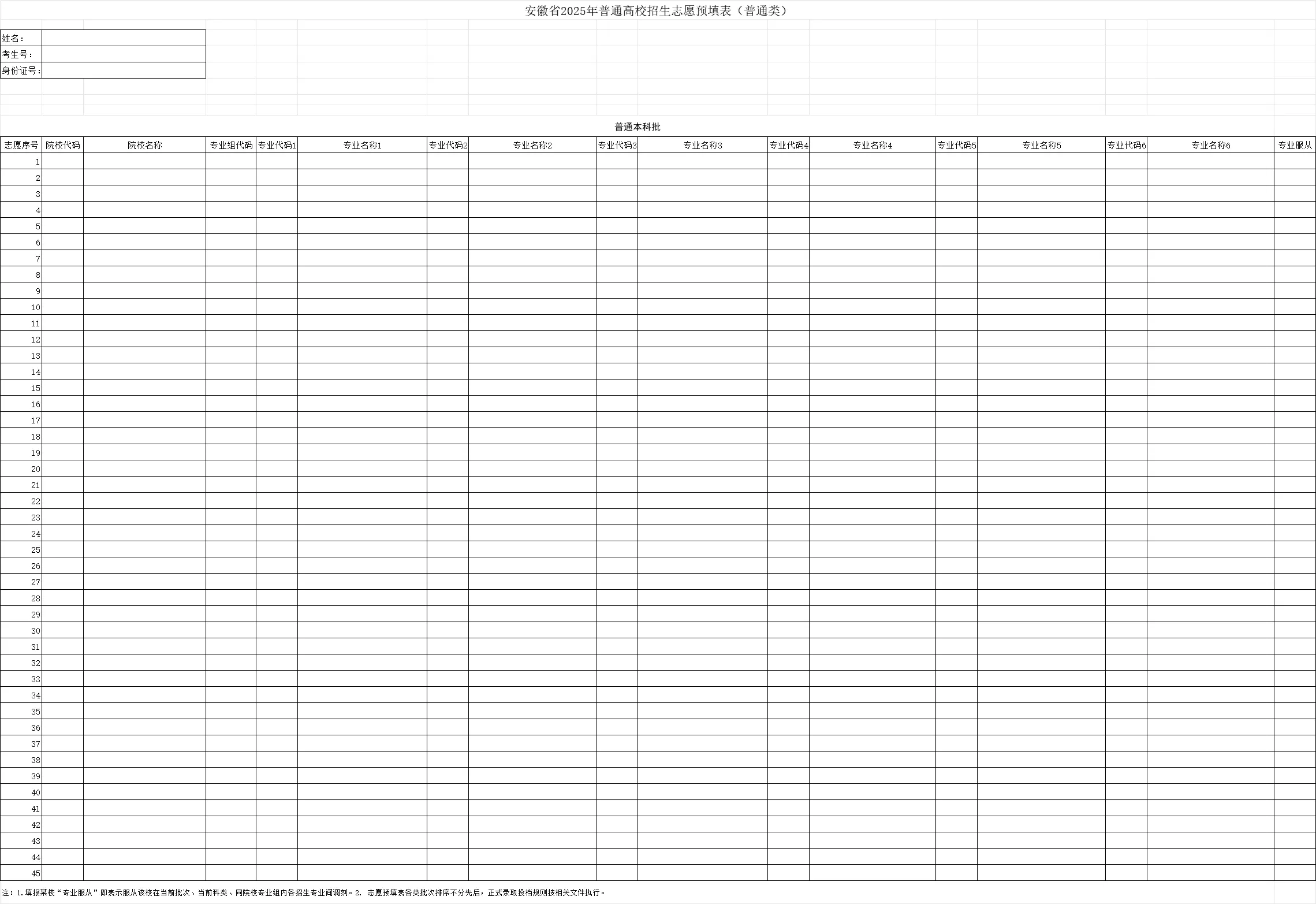 一、安徽45個(gè)志愿表模板