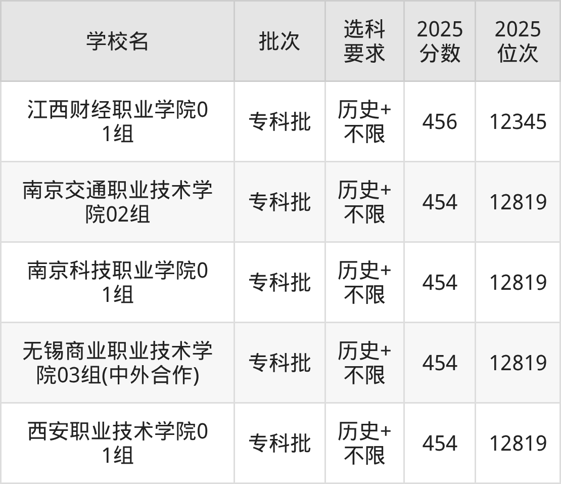 | 無(wú)錫城市職業(yè)技術(shù) 學(xué)院 | 001組 | 歷史+ 不限 | 454 | 56206 |