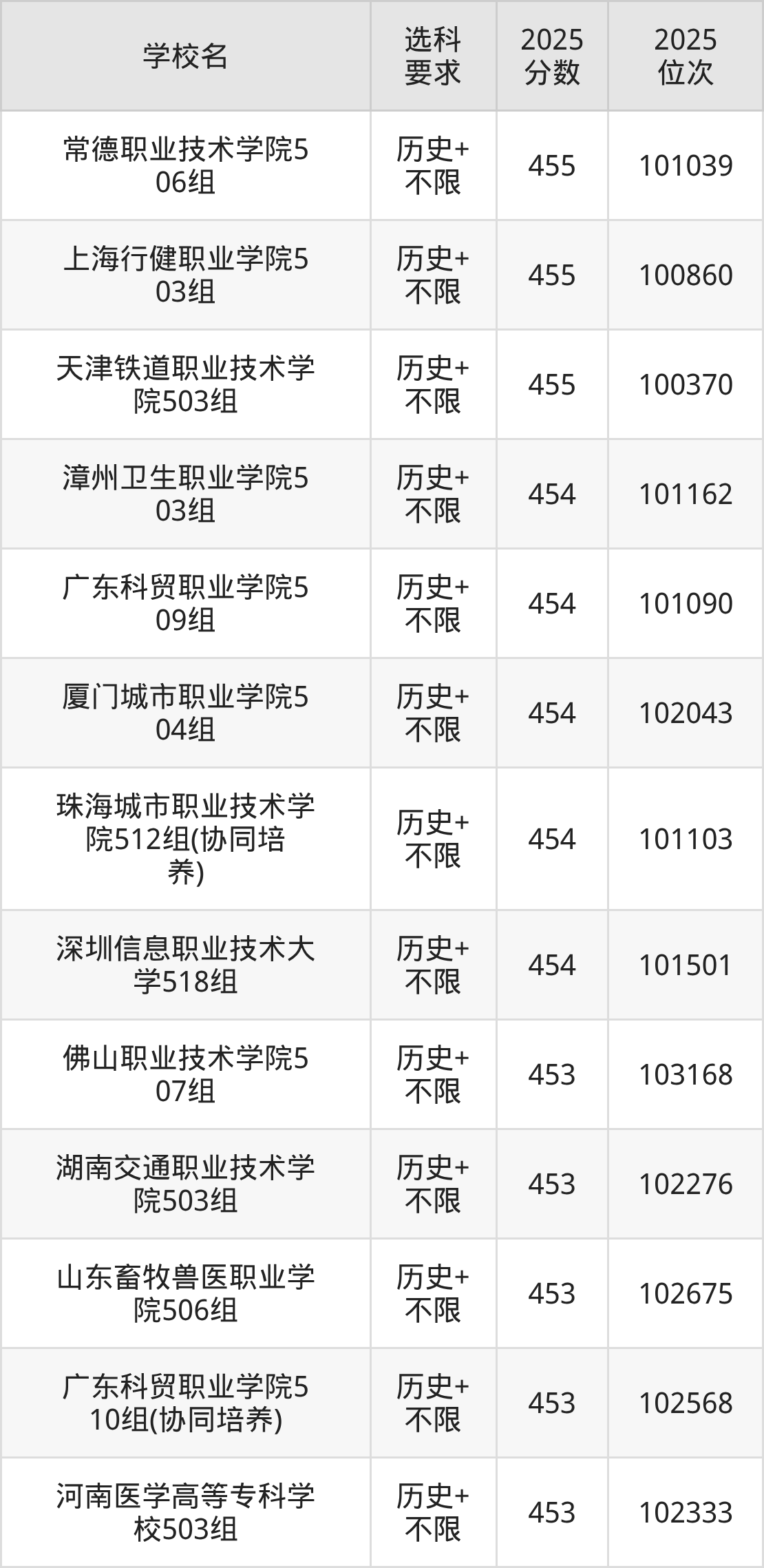 | 柳州鐵道職業(yè)技術(shù) 學(xué)院 | 001組 | 歷史+ 不限 | 453 | 56989 |
