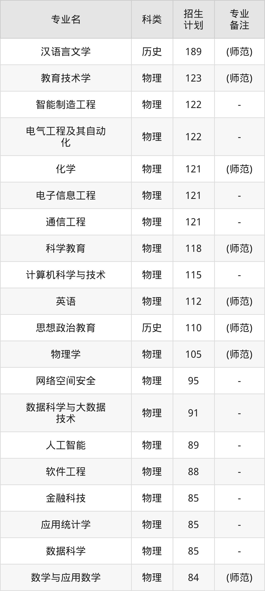 第一名:湖南(4671人),招生人數(shù)最多的專業(yè)是漢語言文學(xué)(189人、歷史類,(師范))。