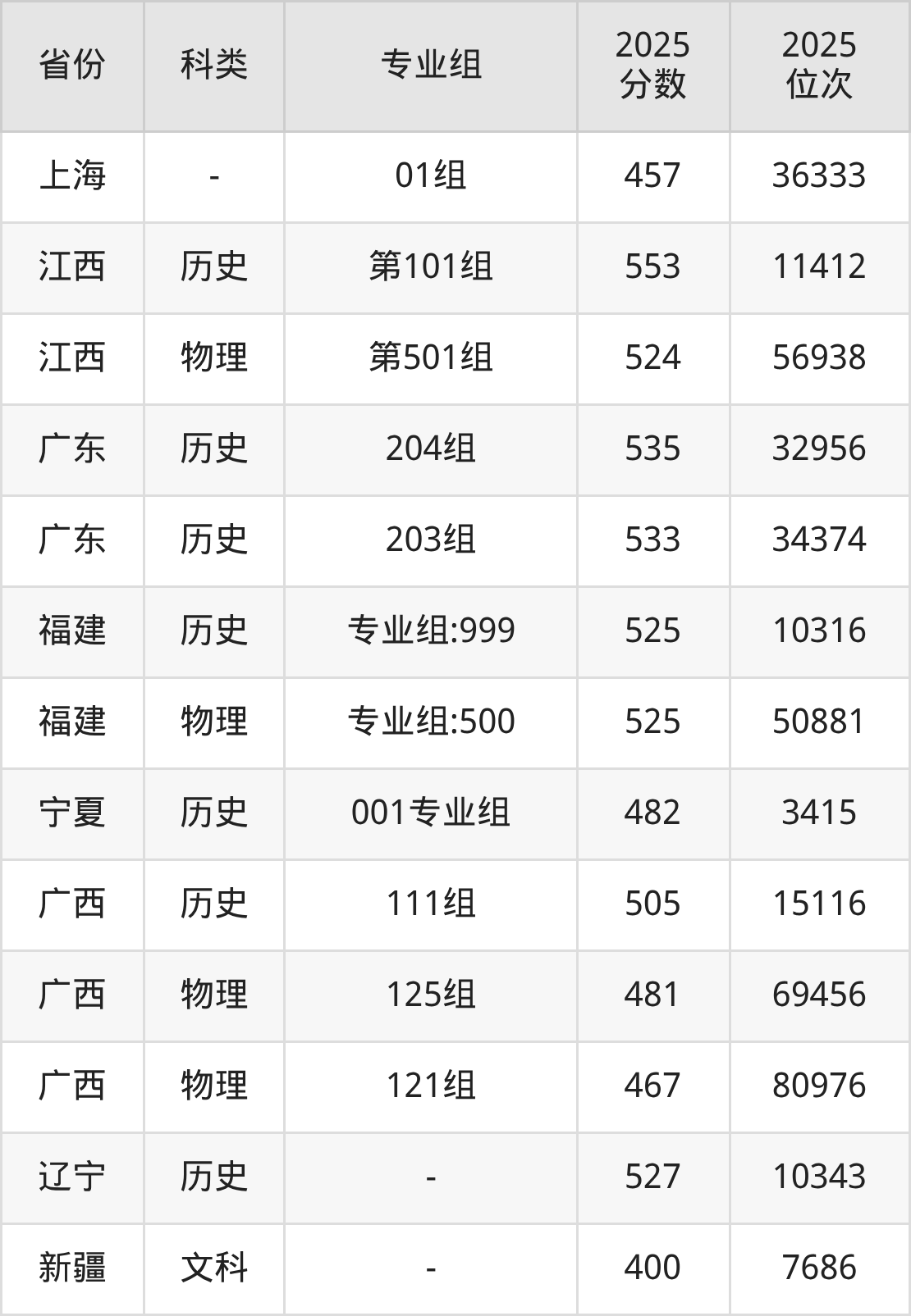 2025年高考招錄數(shù)據(jù)顯示,南京曉莊學(xué)院在各省本科錄取最低分?jǐn)?shù)線集中在400分-578分之間,其中在江蘇錄取最低分為518分、廣東錄取最低分為533分、江西錄取最低分為524分,2026屆考生可在下文參考院校招生計(jì)劃及分?jǐn)?shù)線詳情。