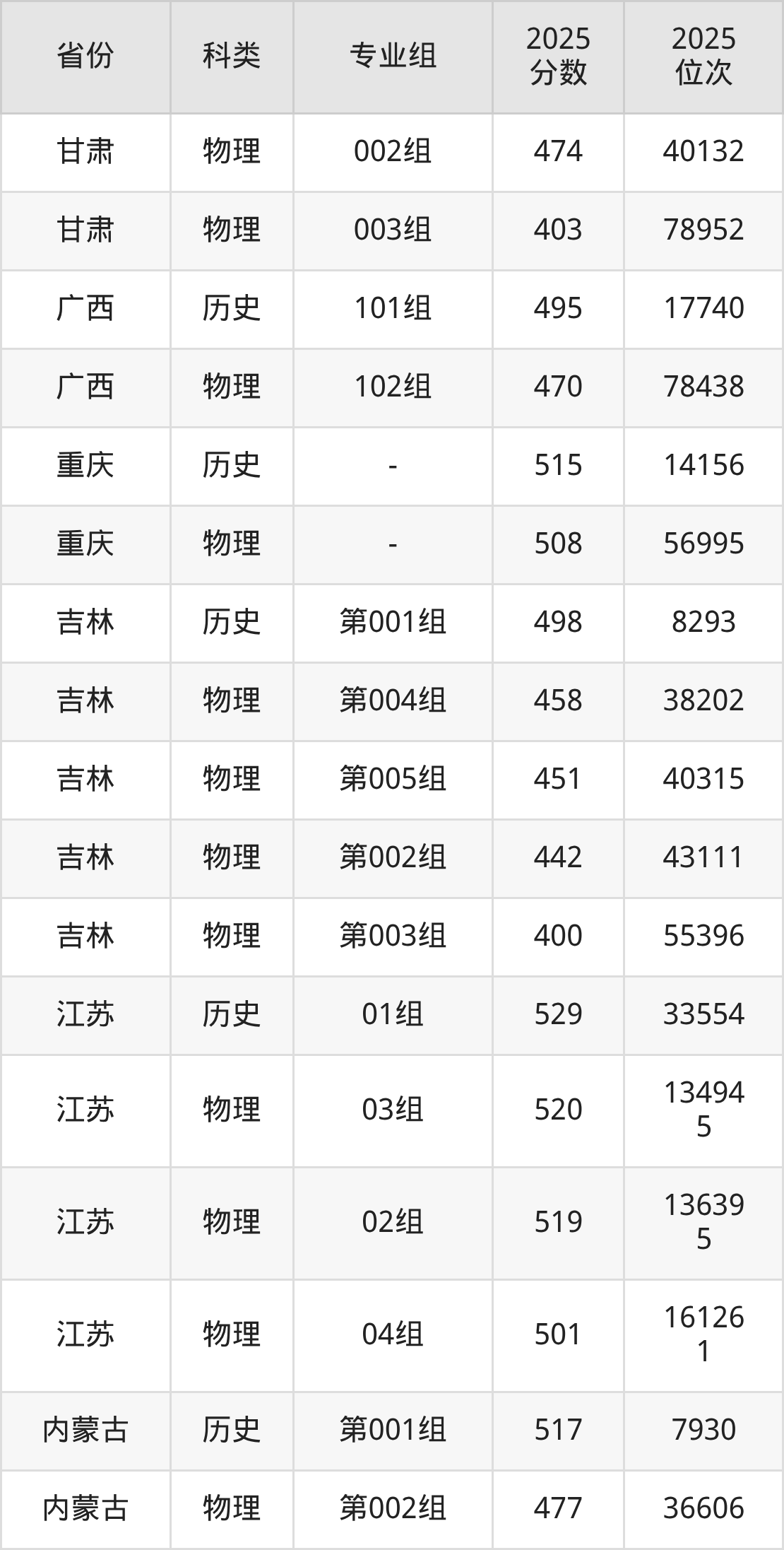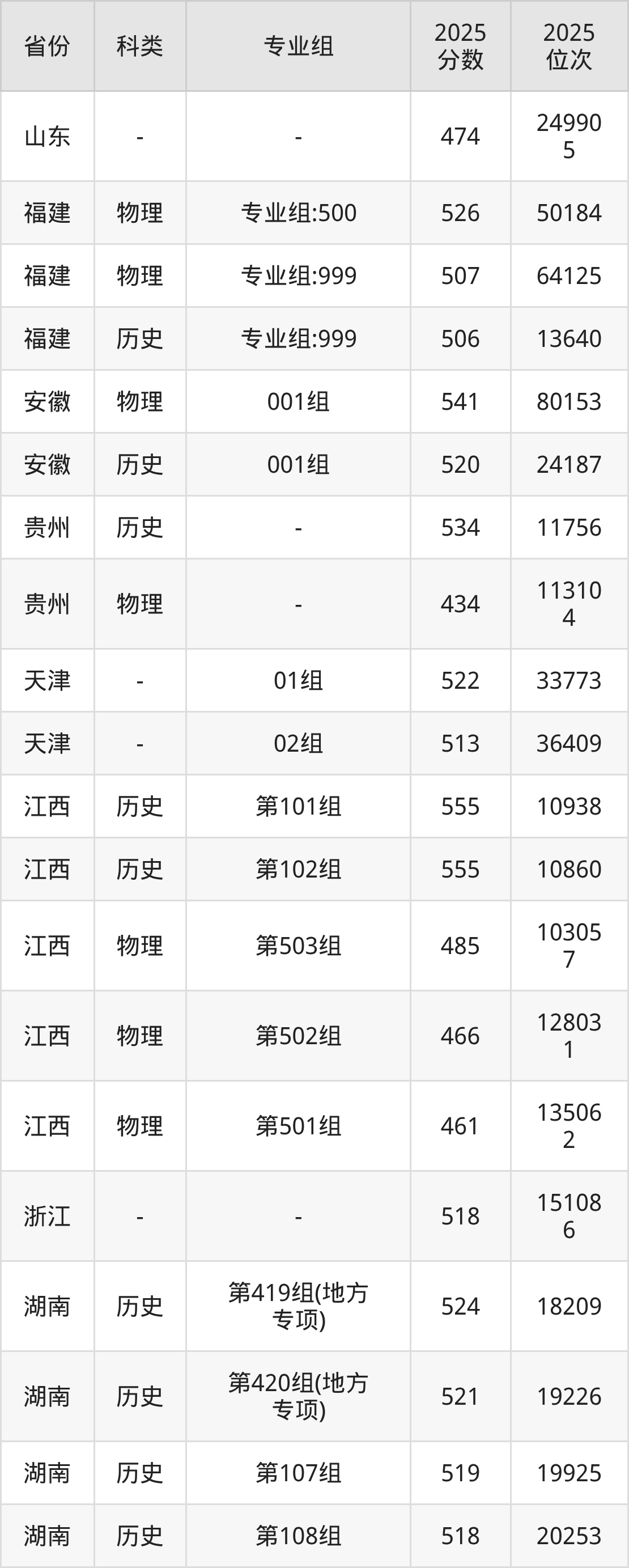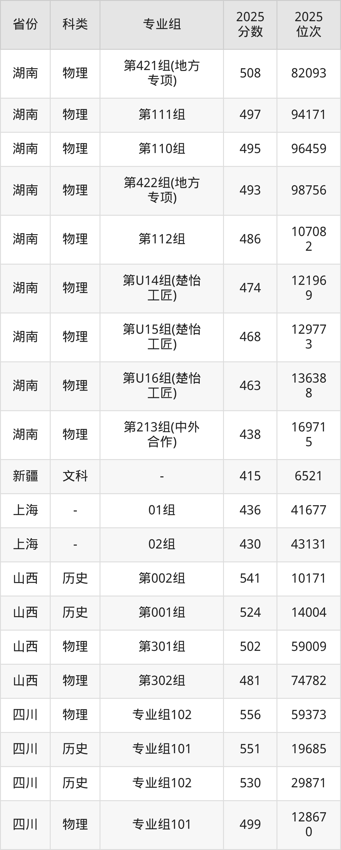 除上述省份外,湖南理工學(xué)院2025各省錄取最低分詳情見下: