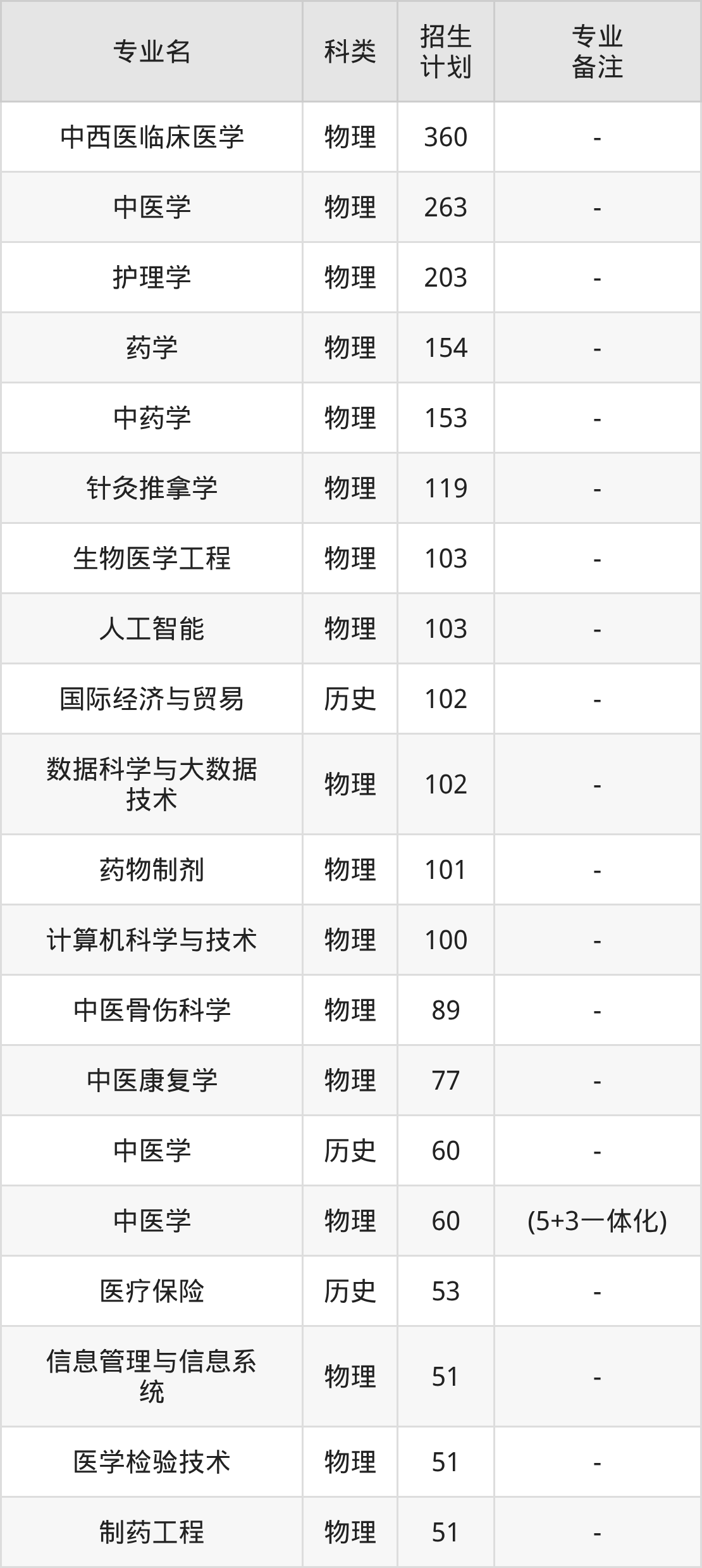 安徽中醫(yī)藥大學(xué)2025全國(guó)各省招生計(jì)劃詳情見(jiàn)下: