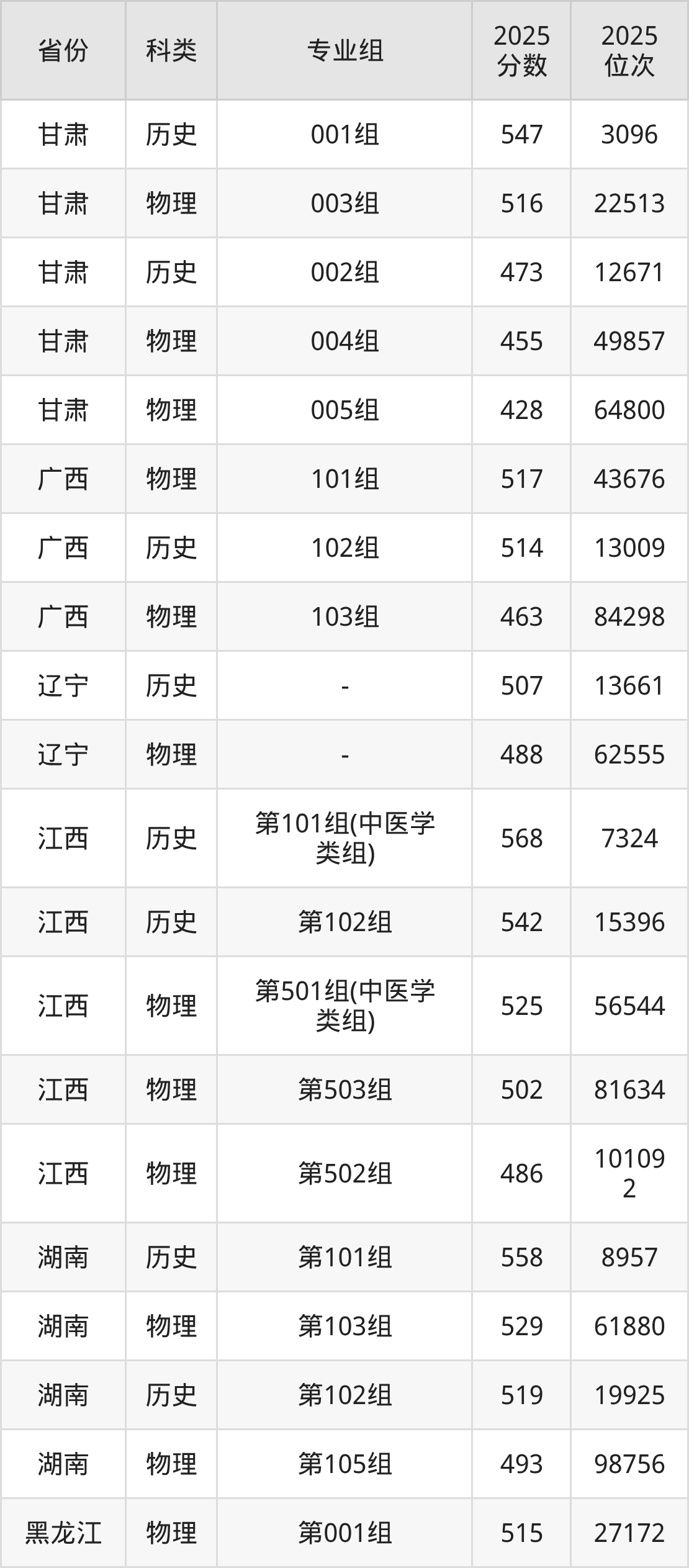 除上述省份外,安徽中醫(yī)藥大學(xué)2025各省錄取最低分詳情見(jiàn)下: