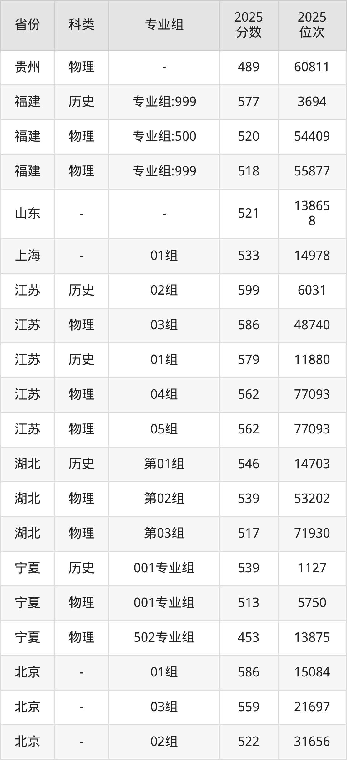 2025年高考招錄數(shù)據(jù)顯示,安徽中醫(yī)藥大學(xué)在各省本科錄取最低分?jǐn)?shù)線集中在428分-599分之間,其中在安徽錄取最低分為523分、四川錄取最低分為528分、福建錄取最低分為518分,2026屆考生可在下文參考院校招生計(jì)劃及分?jǐn)?shù)線詳情。