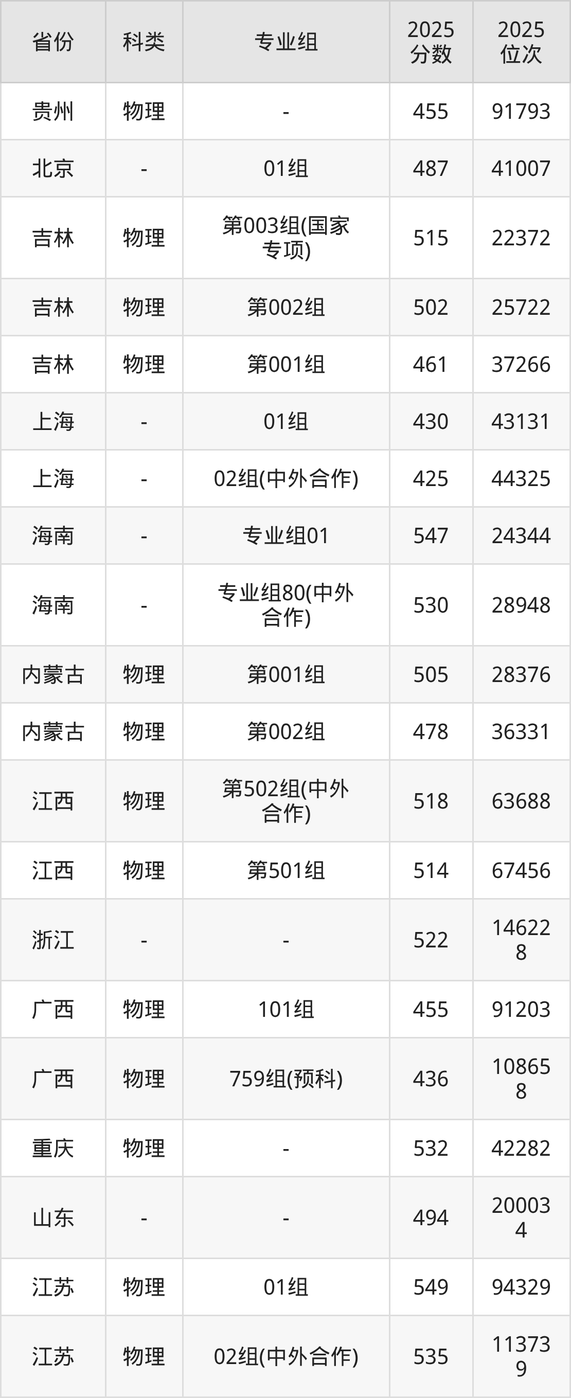 2、上海:最低分425分,對(duì)應(yīng)最低分專業(yè)組為02組(中外合作),位次44325名;
