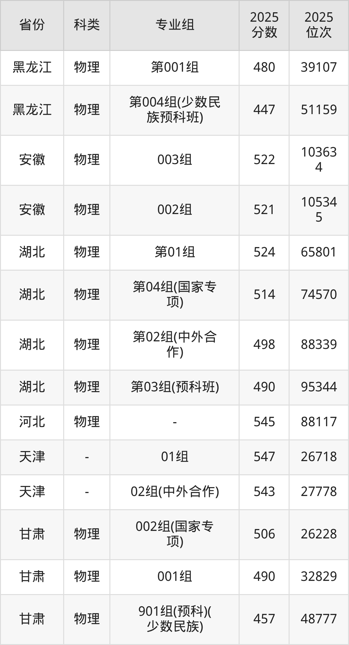 4、黑龍江:最低分447分,對(duì)應(yīng)最低分專業(yè)組為物理類第004組(少數(shù)民族預(yù)科班),位次51159名;