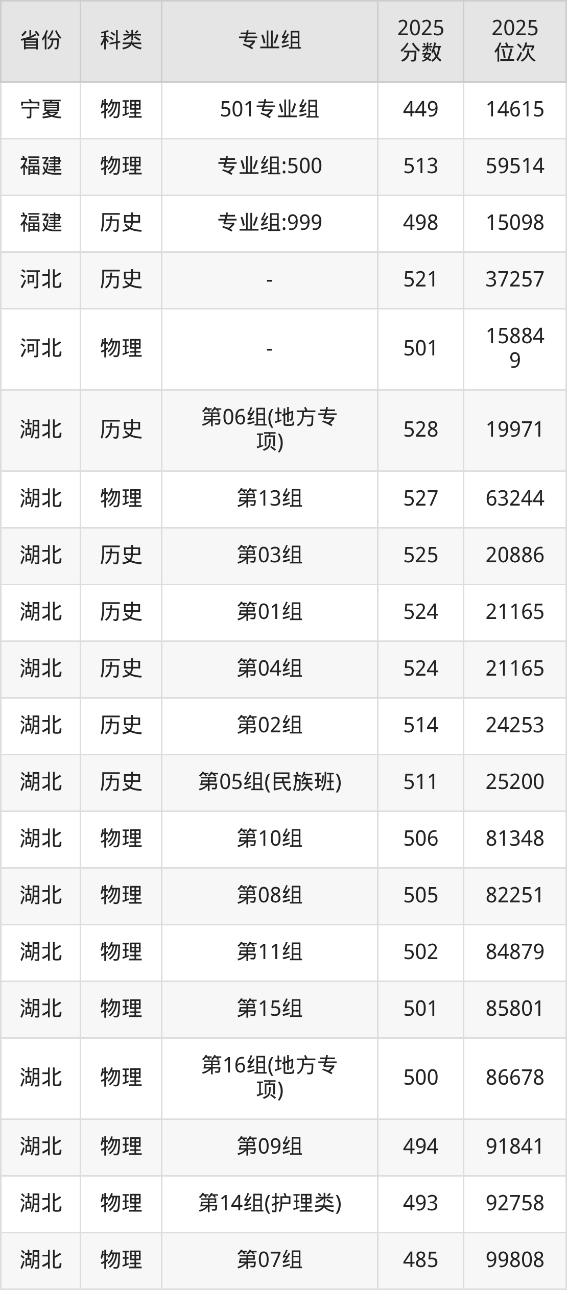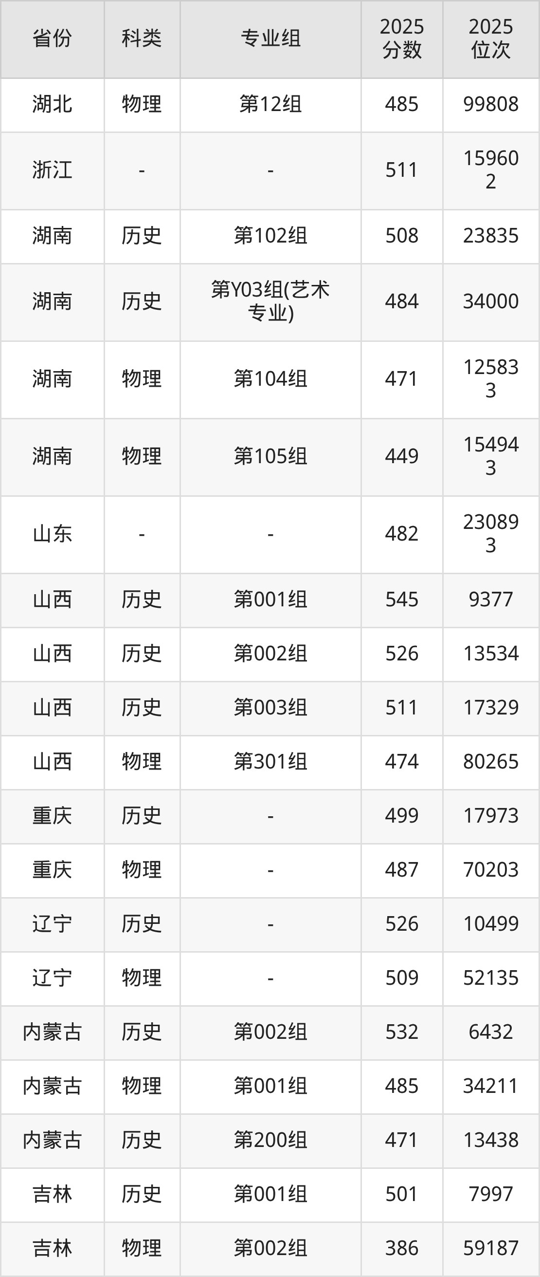 除上述省份外,湖北文理學(xué)院2025各省錄取最低分詳情見下: