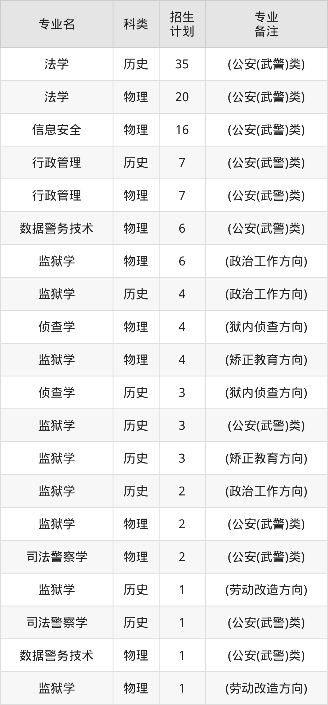 一、中央司法警官學(xué)院2025全國招生計劃表