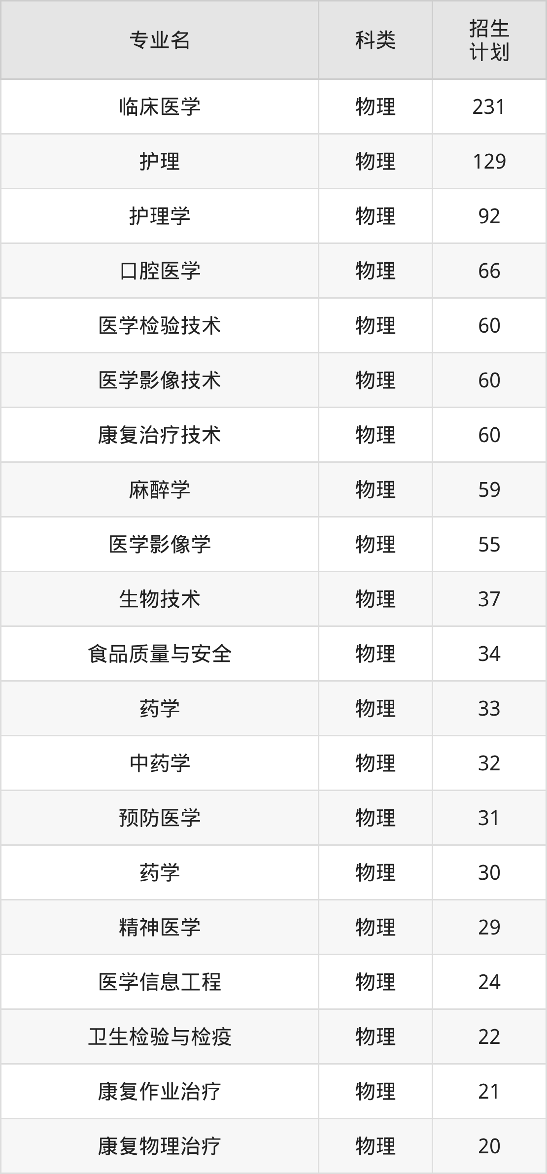 第二名:河南(127人),招生人數(shù)最多的專業(yè)是臨床醫(yī)學(xué)(48人、物理類)。