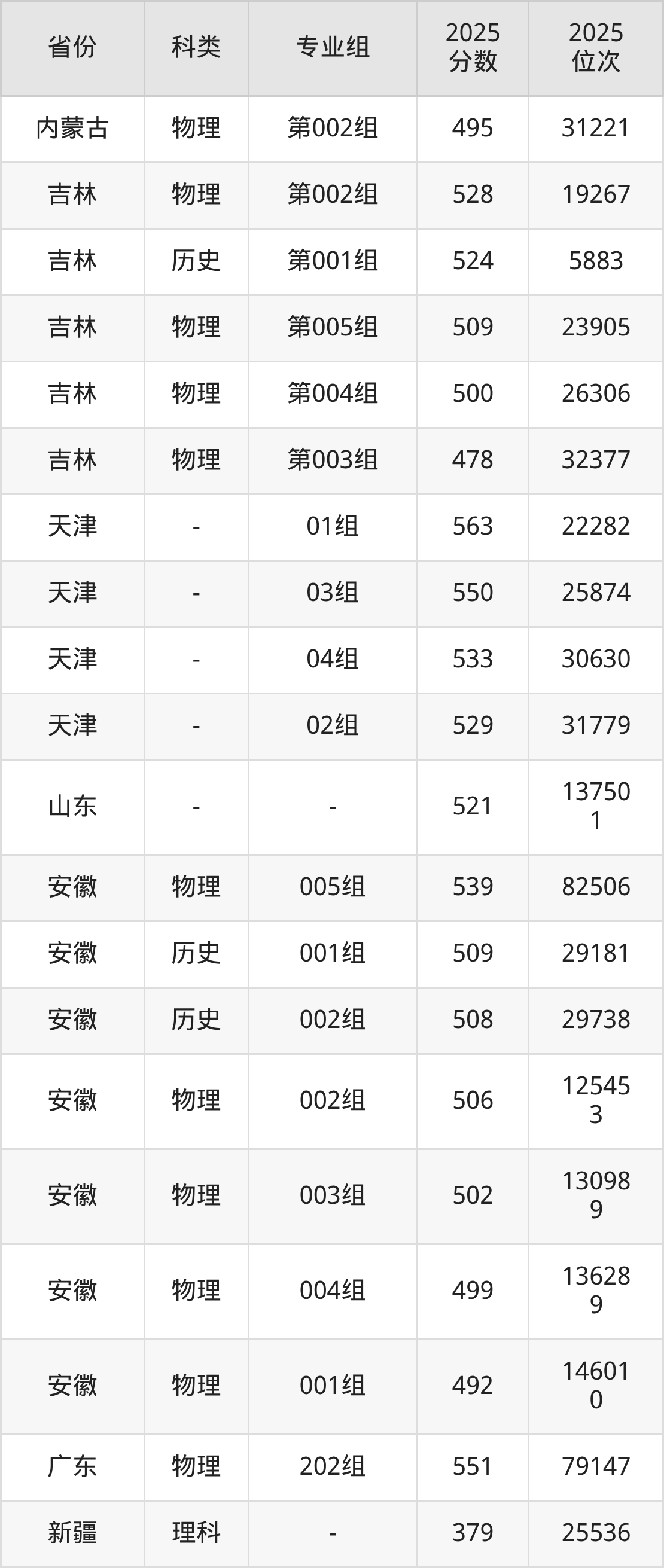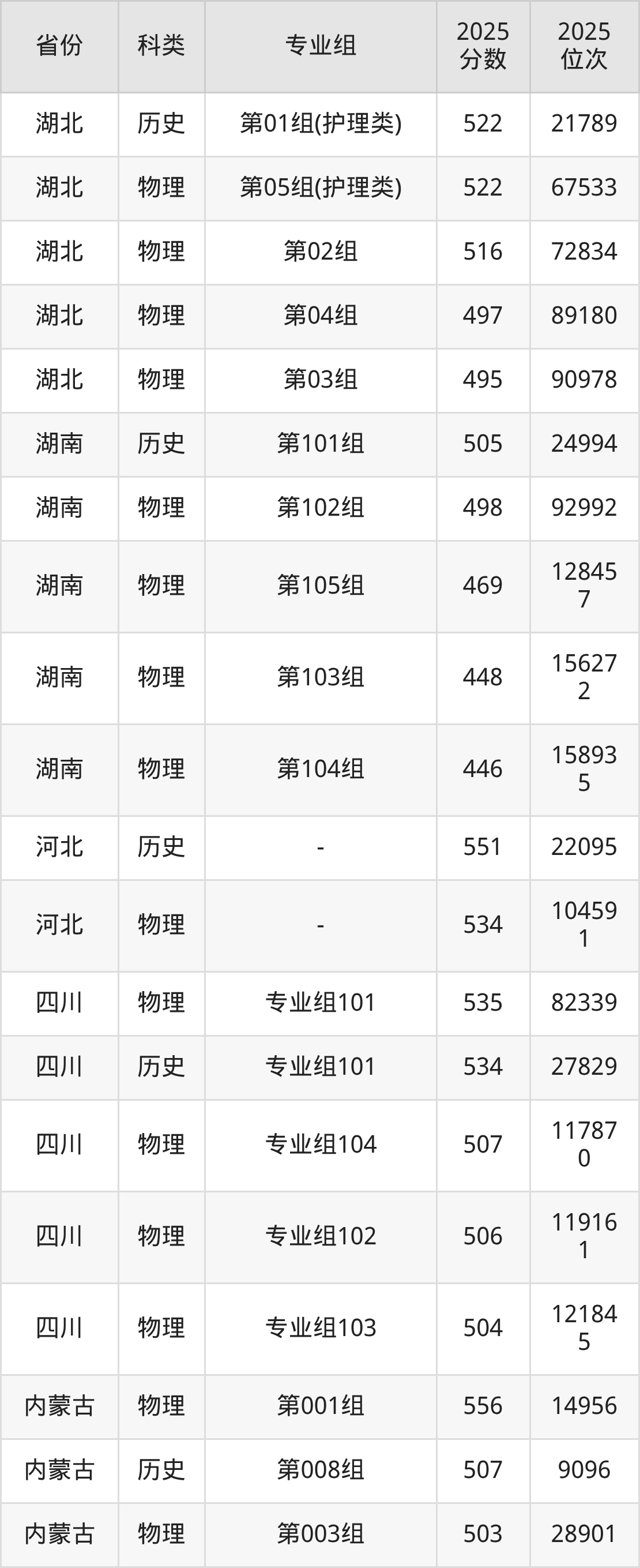4、湖南:最低分446分,對應(yīng)最低分專業(yè)組為物理類第104組,位次158935名;