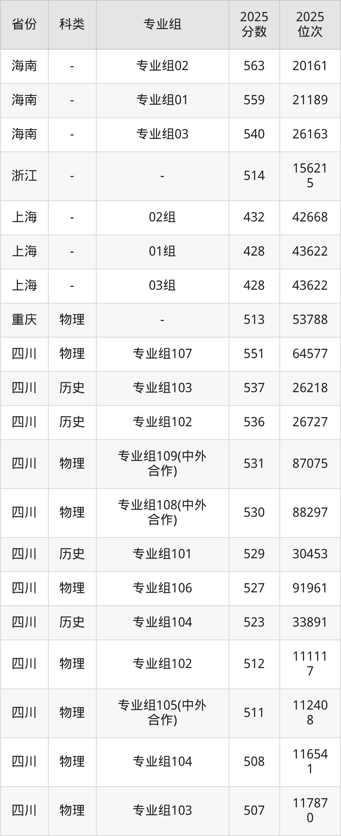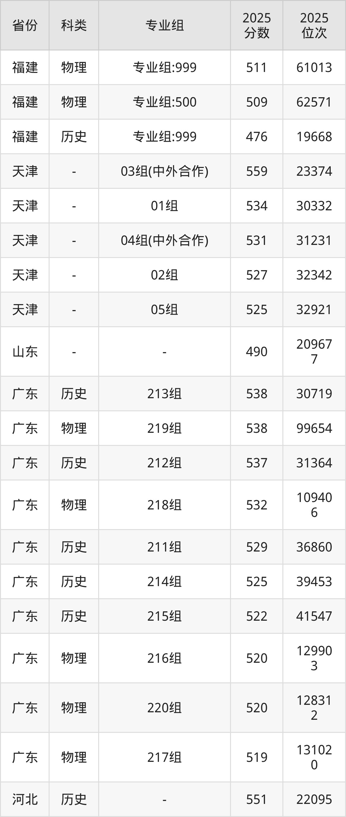 3、上海:最低分428分,對(duì)應(yīng)最低分專業(yè)組為03組,位次43622名;