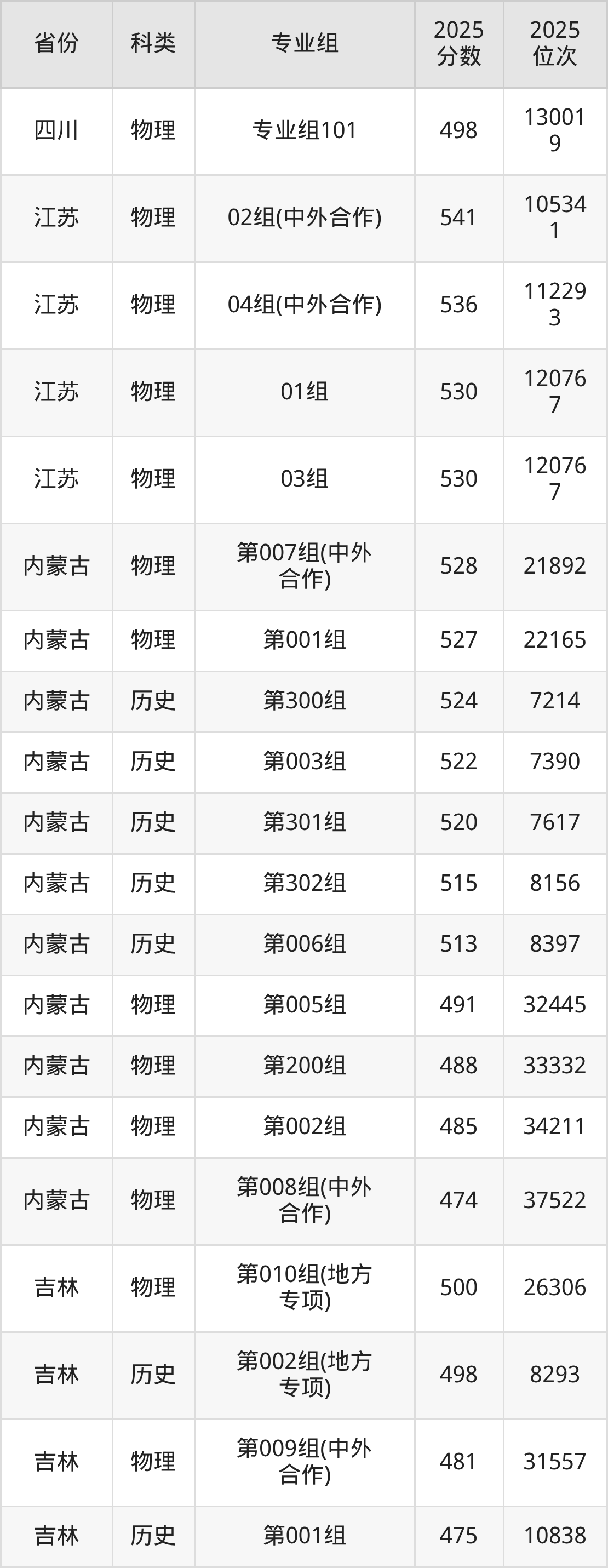 4、吉林:最低分434分,對(duì)應(yīng)最低分專業(yè)組為物理類第006組(中外合作),位次45451名;