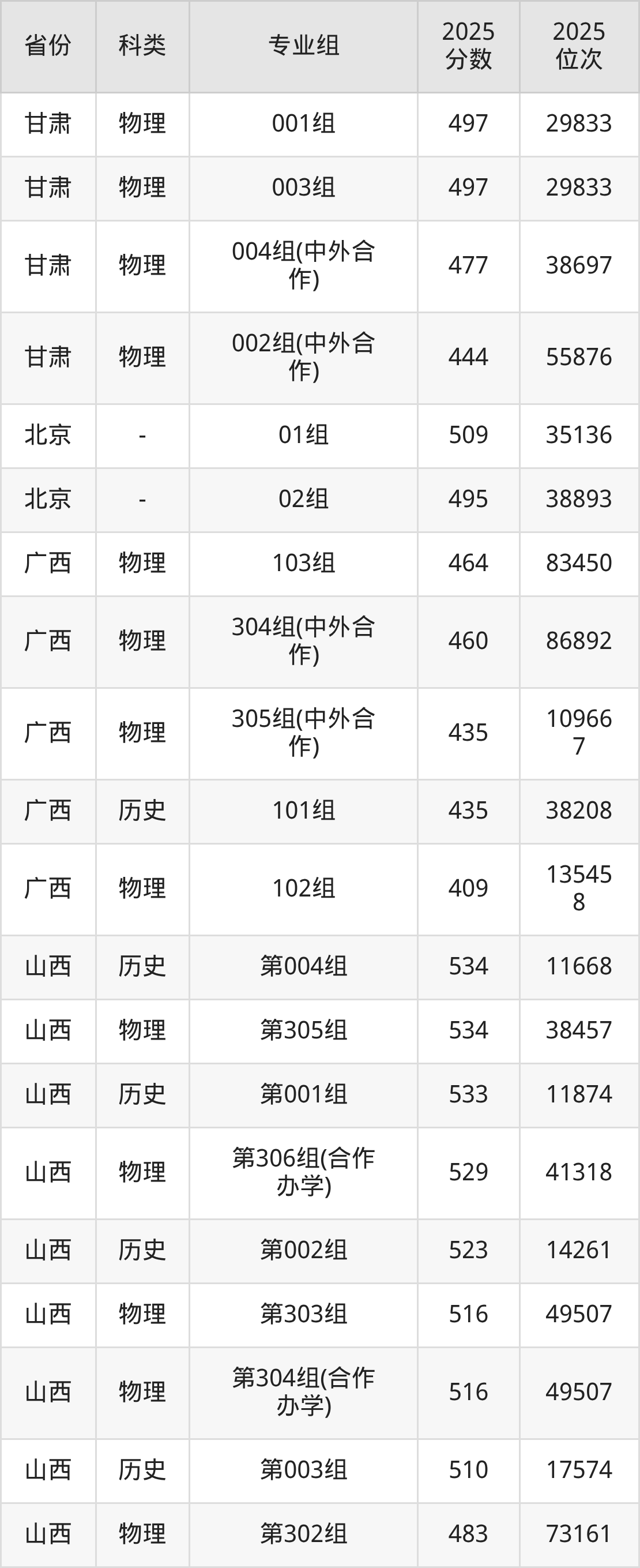 2、廣西:最低分409分,對(duì)應(yīng)最低分專業(yè)組為物理類102組,位次135458名;