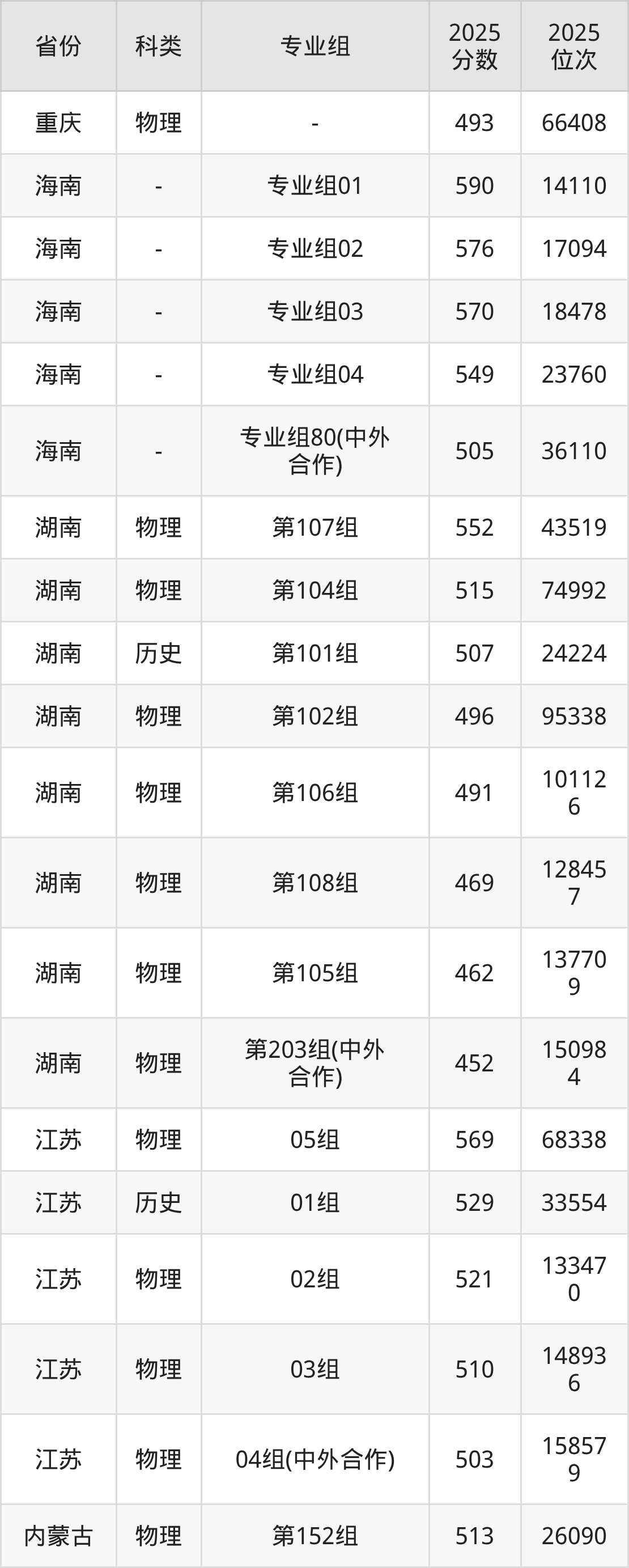 第三名:湖南(78人),招生人數(shù)最多的專業(yè)是軟件工程(9人、物理類,(中外合作辦學))。