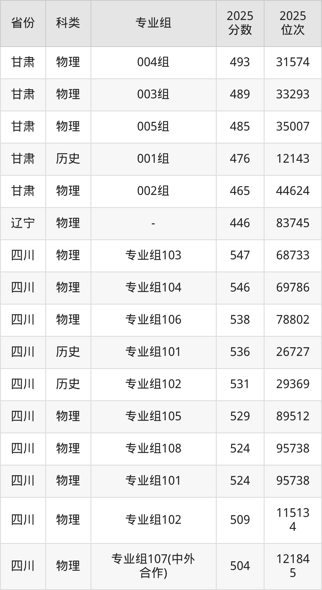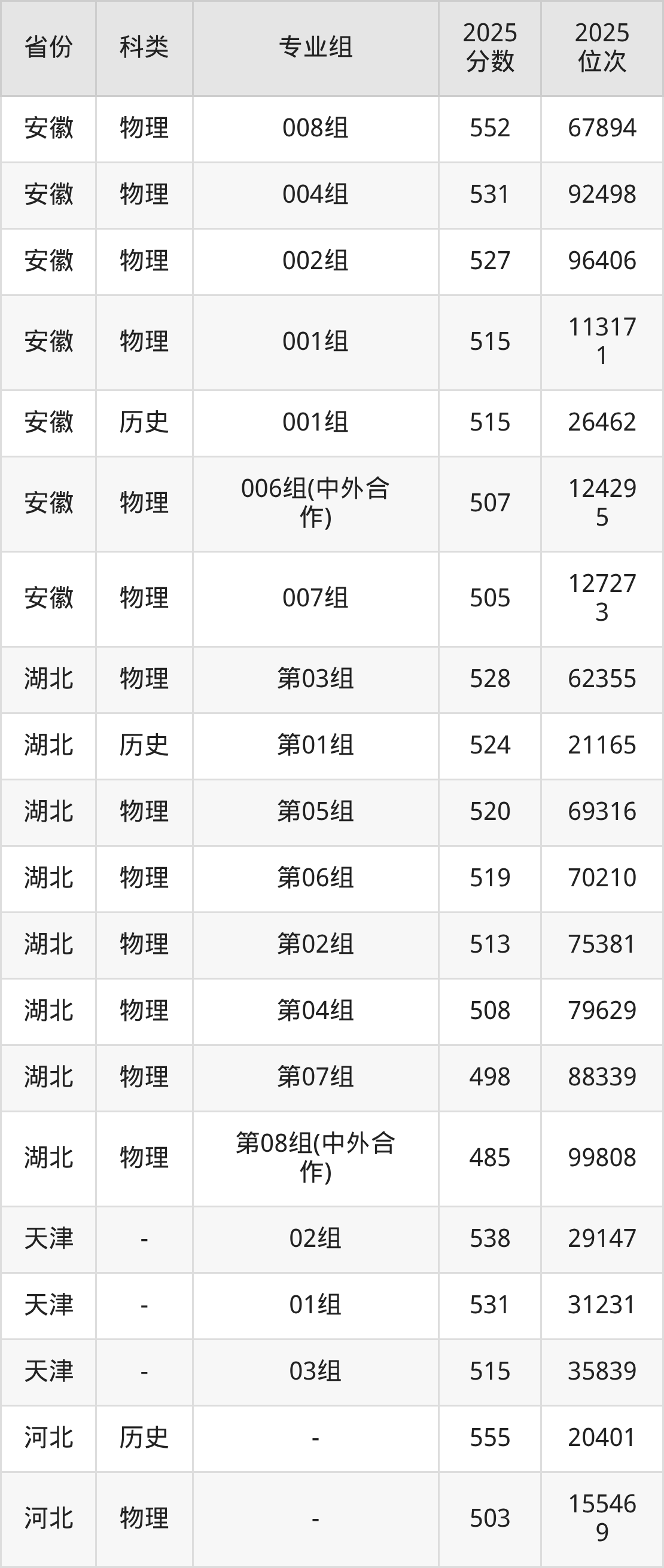 4、吉林:最低分446分,對應(yīng)最低分專業(yè)組為物理類第003組,位次41859名;