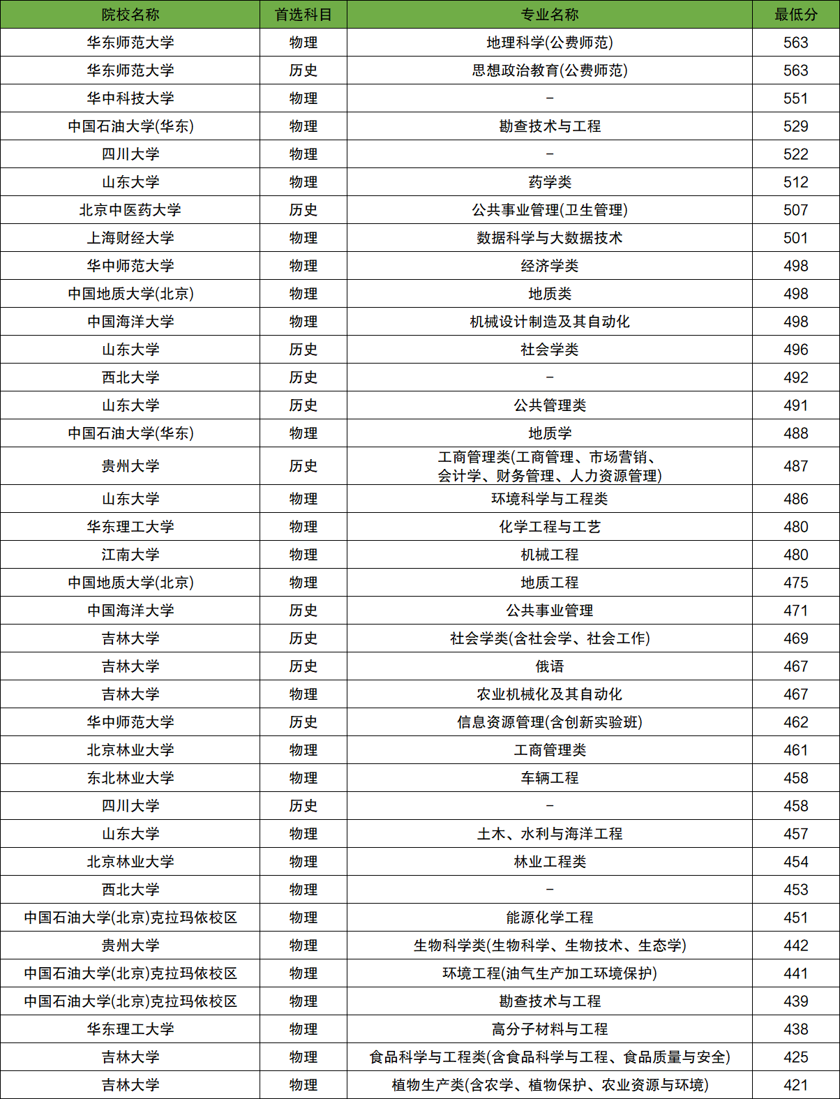 以山東大學(xué)為例,歷史類各個(gè)專業(yè)最低分?jǐn)?shù)線如下: