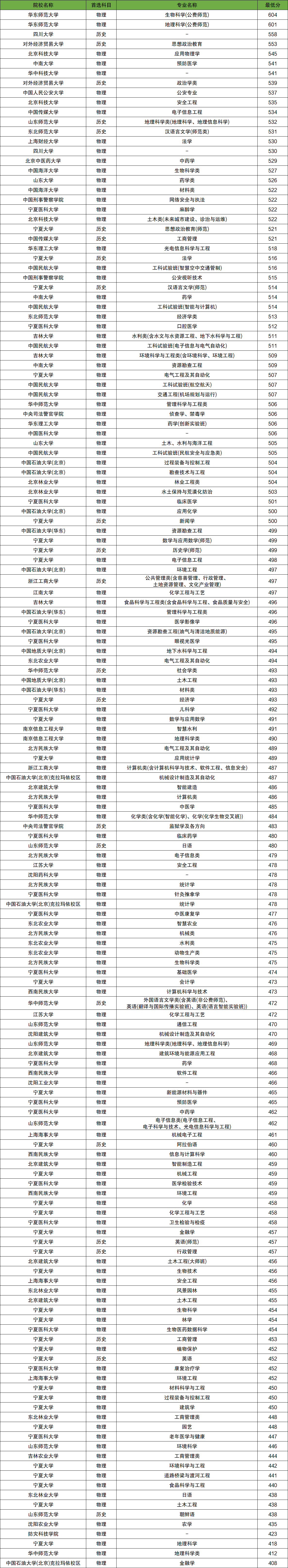 以寧夏醫(yī)科大學(xué)為例,物理類各個(gè)專業(yè)最低分?jǐn)?shù)線如下: