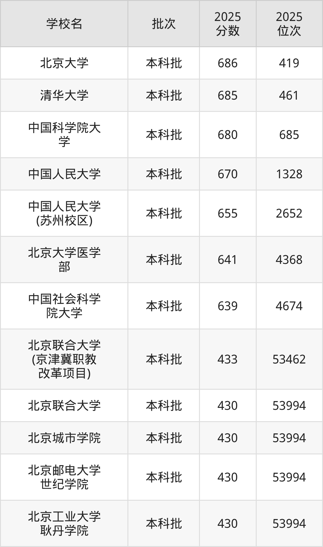 二、北京綜合類大學2025年錄取分數(shù)線
