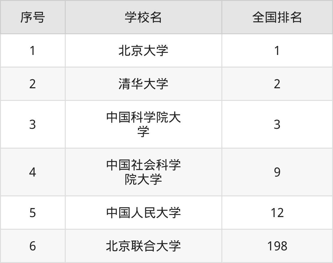 本文以校友會2025年大學全國排名為參考依據(jù),列舉北京市內綜合類大學的全國排名情況,其中排名前5的是: