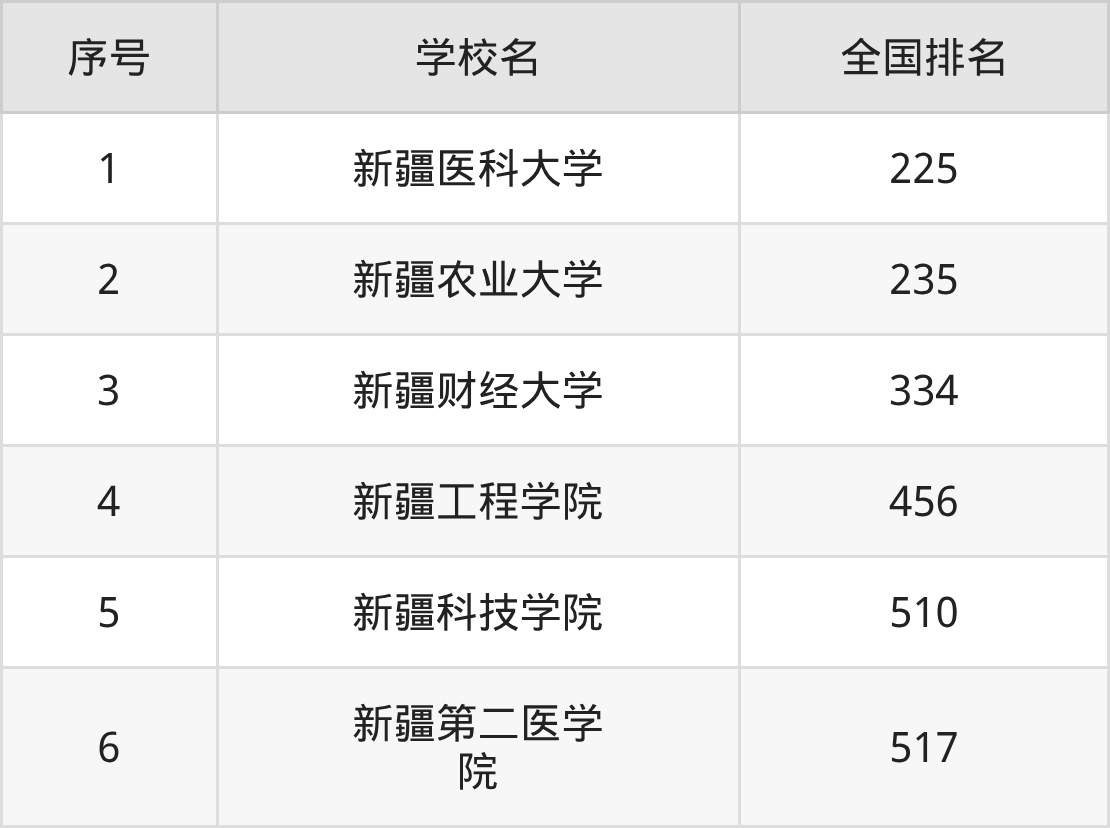 下面是新疆理科大學(xué)最新排名一覽表,供參考(下方僅展示本科院校排名):