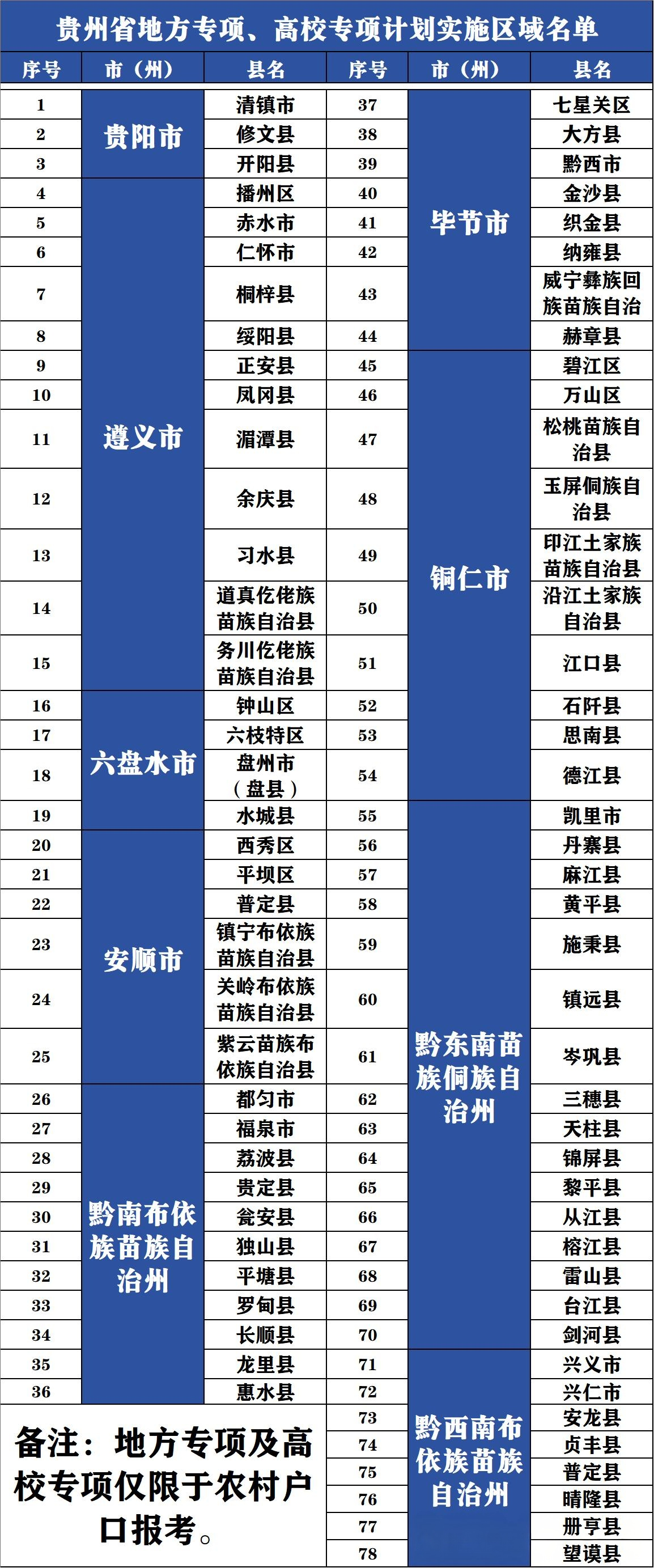 注:若與貴州2026年地方專項報考信息有出入,請以官方最新公布為準。