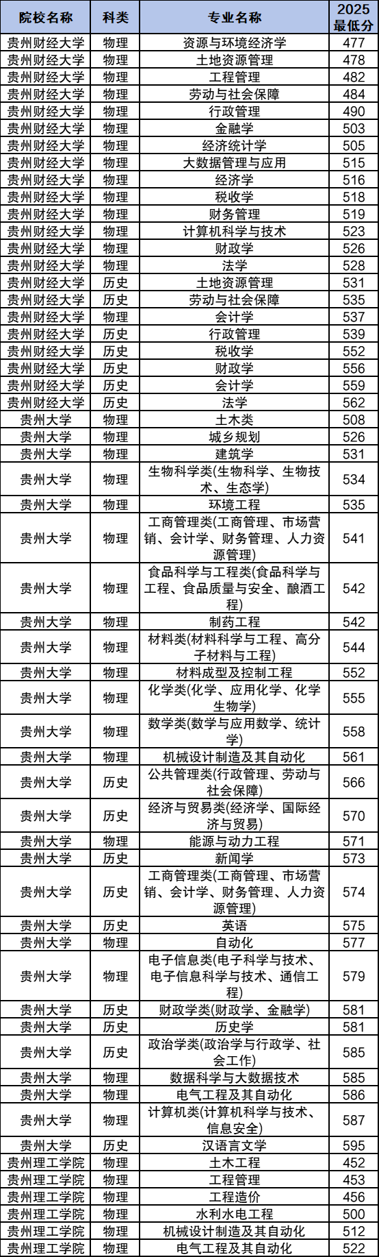 注:目前只有部分院校公布了2025年貴州地方專項計劃錄取分數(shù)線,其余院校分數(shù)本站正在收集中,同學們可持續(xù)關注本文更新情況。