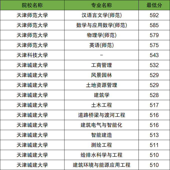 天津地方專項(xiàng)計(jì)劃大學(xué)名單及錄取分?jǐn)?shù)線: