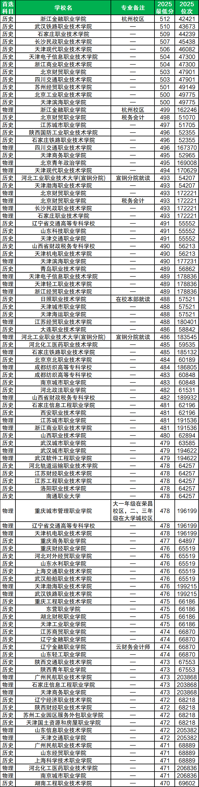 而高分考生可以考慮報考浙江金融職業(yè)學院,該校屬于國家示范高職、優(yōu)質(zhì)??聘呗?、雙高B檔院校,大數(shù)據(jù)與會計專科專業(yè)2025年招生分數(shù)為512分,是收分最高的公辦大專。