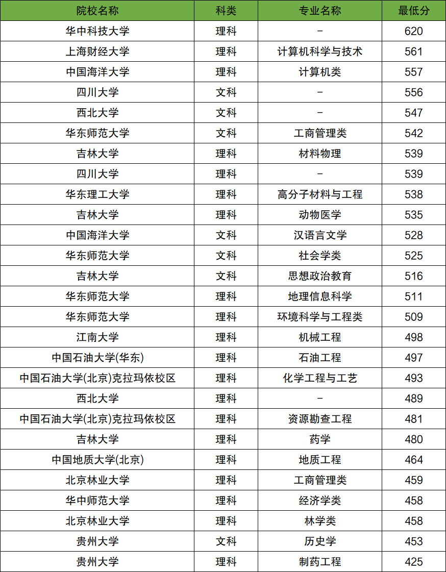 在新疆理科招生的高校專項(xiàng)計(jì)劃院校錄取分?jǐn)?shù)線最低的是貴州大學(xué)制藥工程專業(yè),2025年錄取分?jǐn)?shù)線是425分;錄取分?jǐn)?shù)線最高的是華中科技大學(xué),2025年錄取分?jǐn)?shù)線是620分。