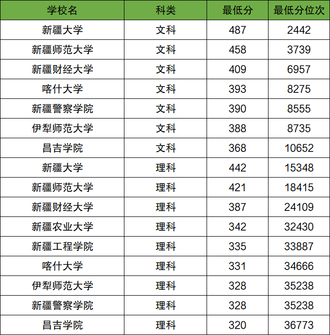 新疆高校專項(xiàng)計(jì)劃大學(xué)名單及錄取分?jǐn)?shù)線(滑動(dòng)查看):