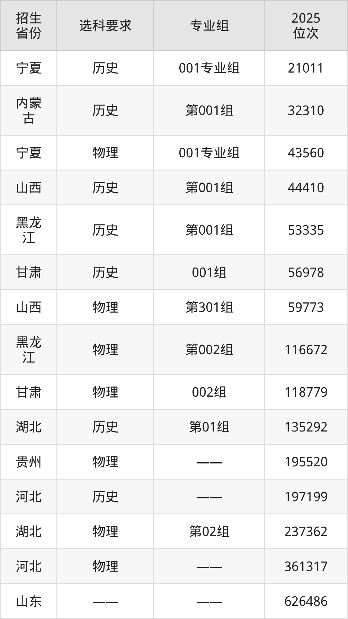 石家莊科技職業(yè)學(xué)院2025年在全國各省的位次差異較大,最高位次是21011位(寧夏歷史類)、最低位次是626486位(山東)。各省具體位次請看下圖: