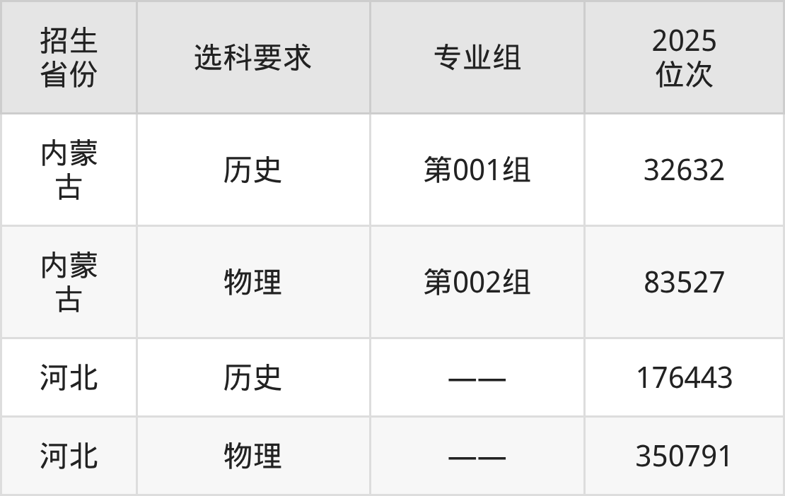 內(nèi)蒙古美術(shù)職業(yè)學院2025年在全國各省的位次差異較大,最高位次是32632位(內(nèi)蒙古歷史類)、最低位次是350791位(河北物理類)。各省具體位次請看下圖: