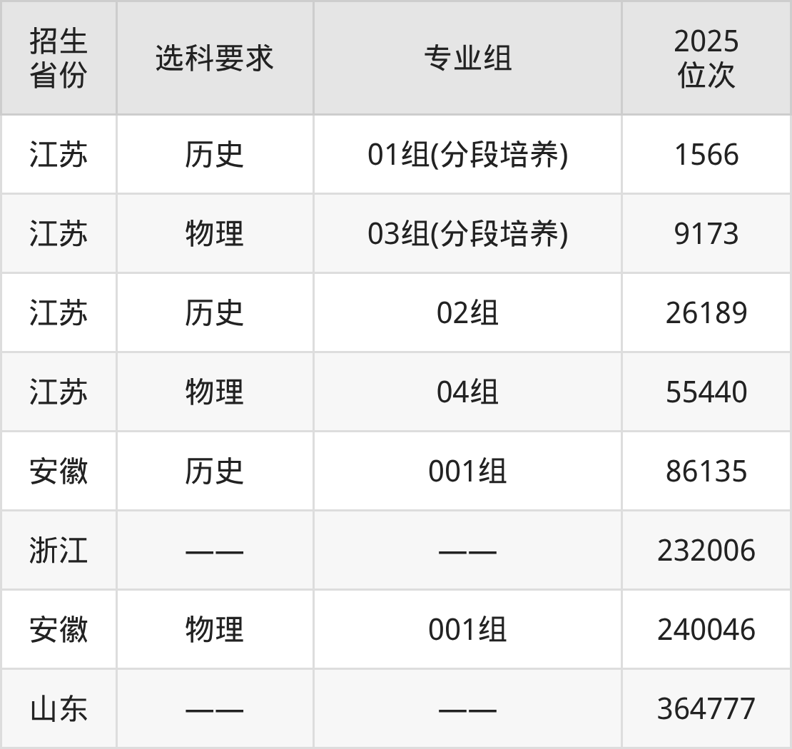 江陰職業(yè)技術(shù)學(xué)院2025年在全國各省的位次差異較大,最高位次是1566位(江蘇歷史類)、最低位次是364777位(山東)。各省具體位次請看下圖:
