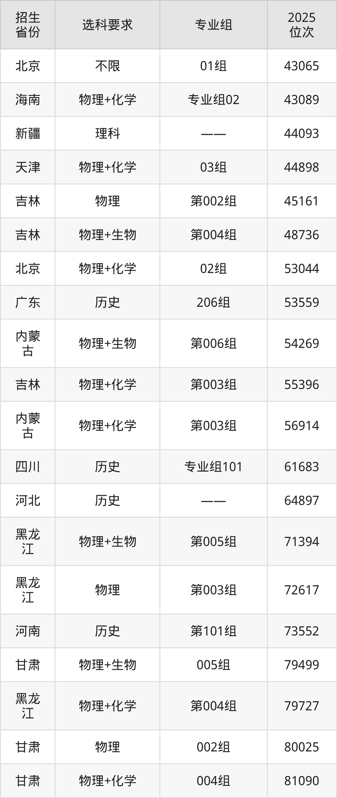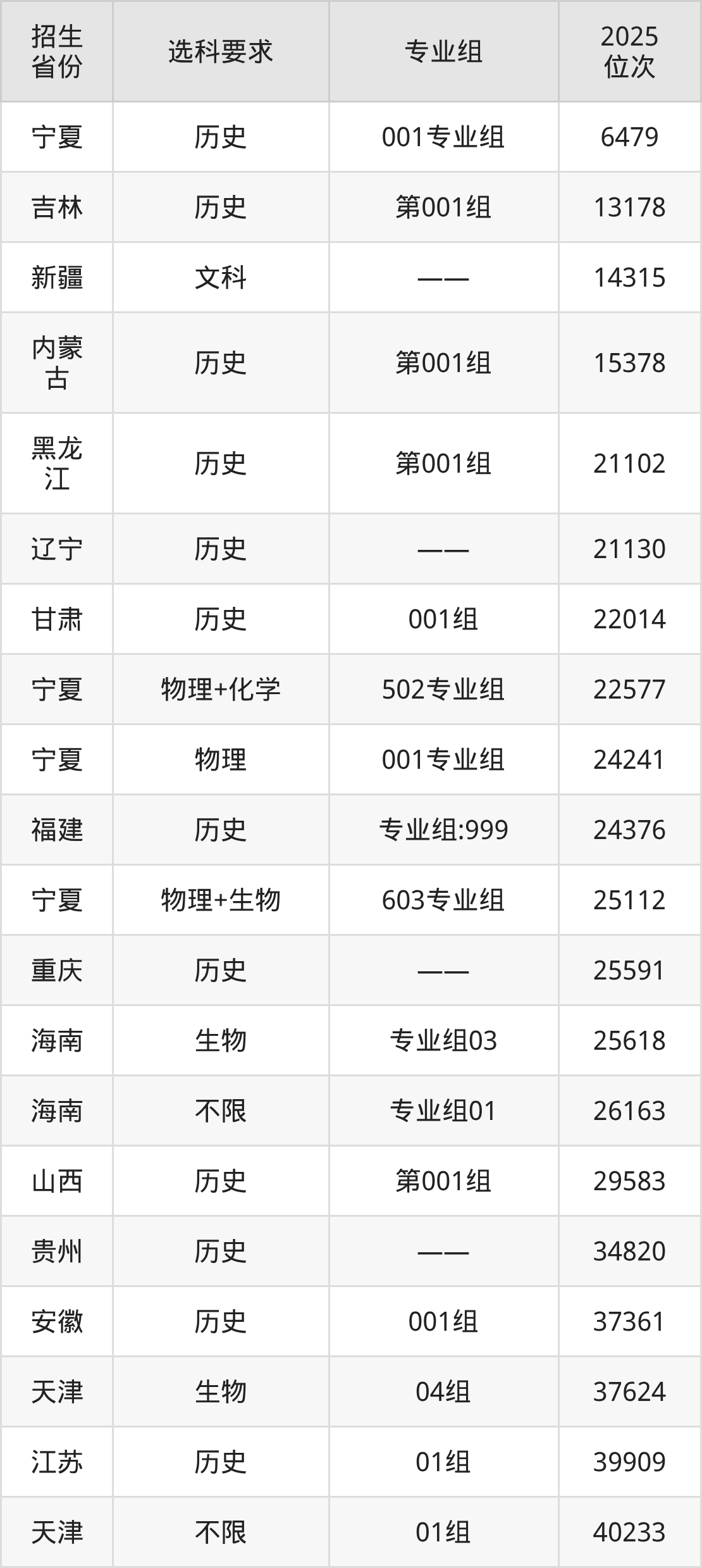 河北東方學(xué)院2025年在全國(guó)各省的位次差異較大,最高位次是6479位(寧夏歷史類)、最低位次是321305位(河南物理類)。各省具體位次請(qǐng)看下圖: