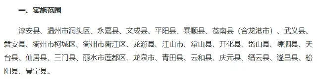 浙江地方專項計劃實施地區(qū):