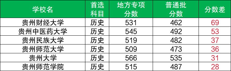 三、貴州地方專項計劃錄取分?jǐn)?shù)線(歷史)