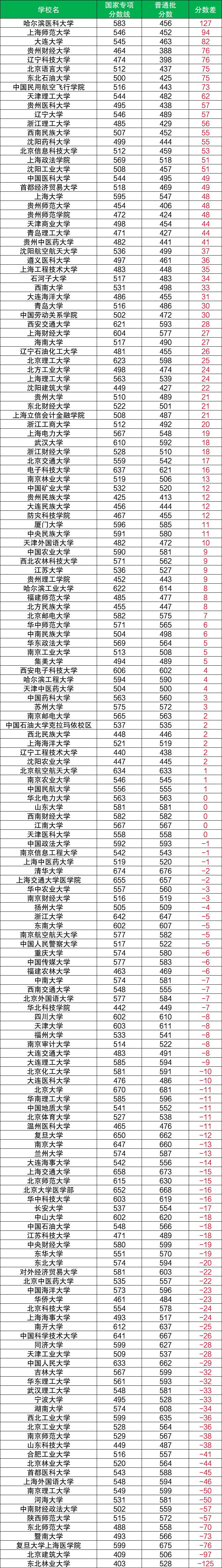 如物理類哈爾濱醫(yī)科大學國家專項計劃比普通類還高127分錄取、歷史類北京語言大學國家專項計劃比普通類高90分錄取等,更多院校錄取分數詳情見下文。