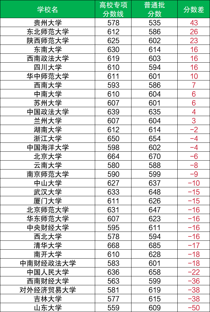 2025年貴州省高校專項計劃錄取分?jǐn)?shù)與普通批次分?jǐn)?shù)的對比情況顯示,部分大學(xué)有降分優(yōu)惠: