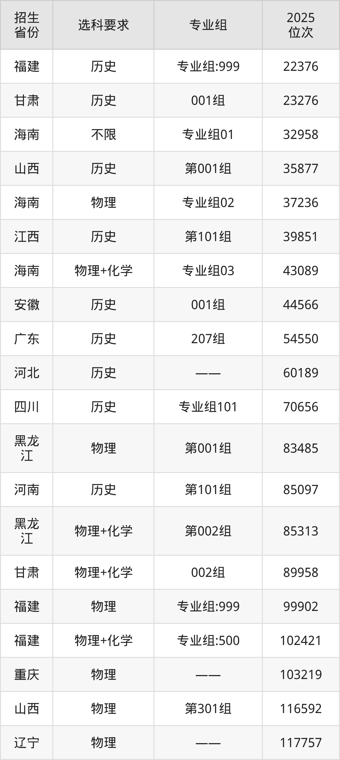 泉州信息工程學院2025年在全國各省的位次差異較大,最高位次是22376位(福建歷史類)、最低位次是352874位(山東)。各省具體位次請看下圖: