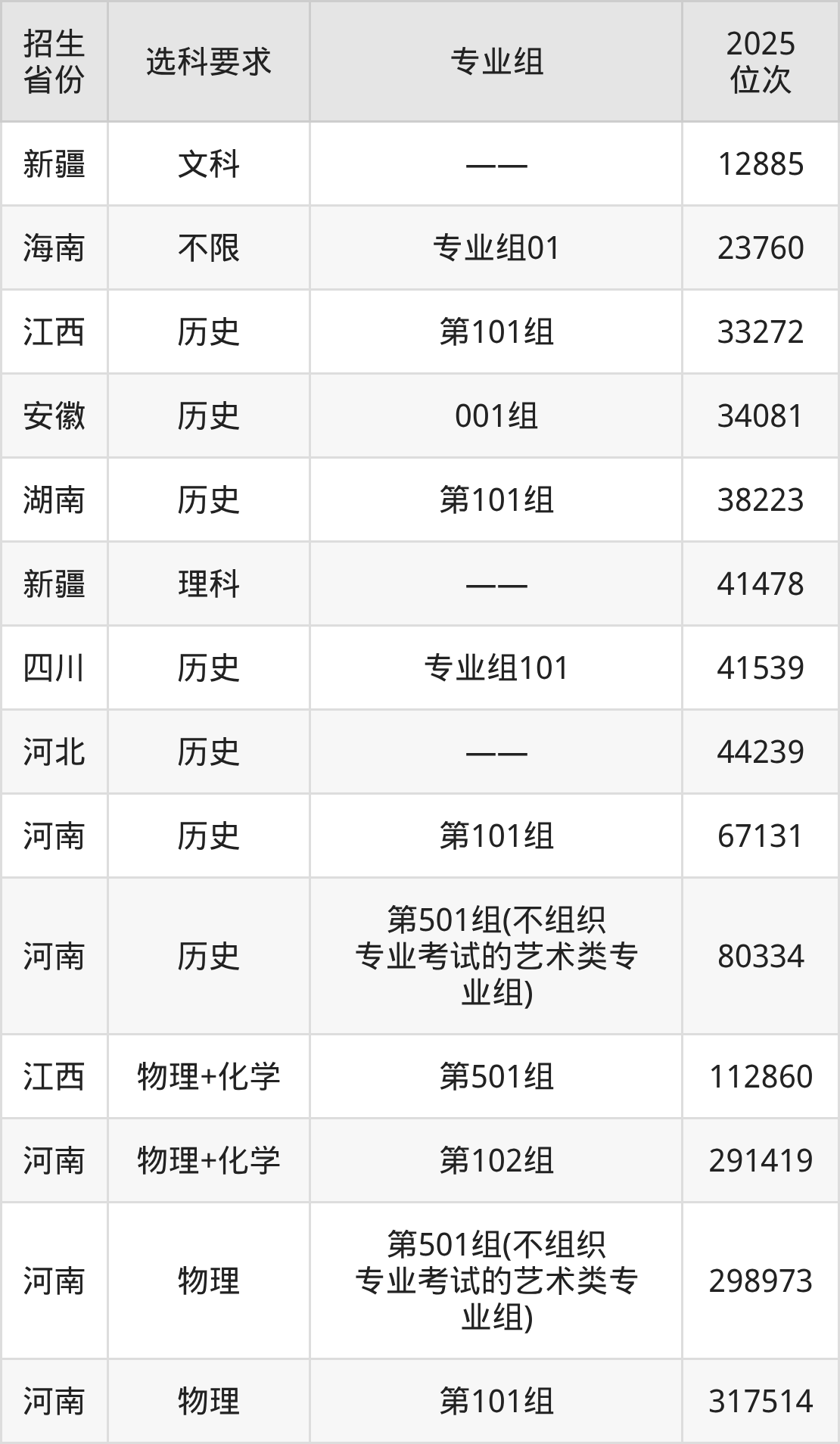 中原科技學(xué)院2025年在全國(guó)各省的位次差異較大,最高位次是12885位(新疆文科)、最低位次是317514位(河南物理類)。各省具體位次請(qǐng)看下圖: