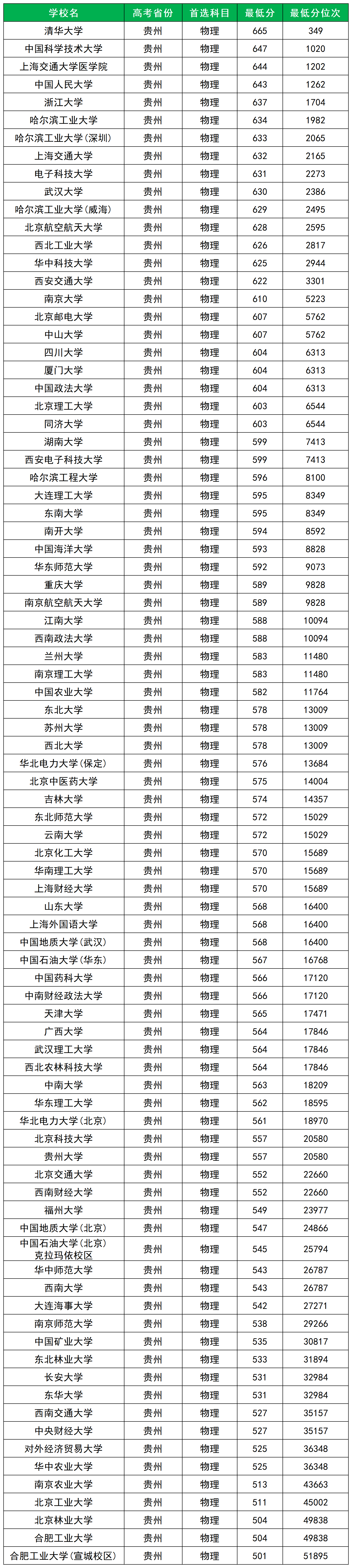 收分最高的院校為清華大學,最低分665,對應位次349;收分最低的院校為合肥工業(yè)大學(宣城校區(qū)),最低分501,對應位次51895。