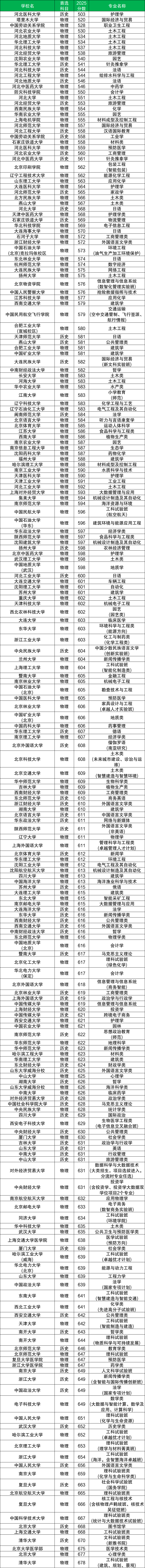 北京大學(xué)醫(yī)學(xué)部:物理類675分,醫(yī)學(xué)技術(shù)類;