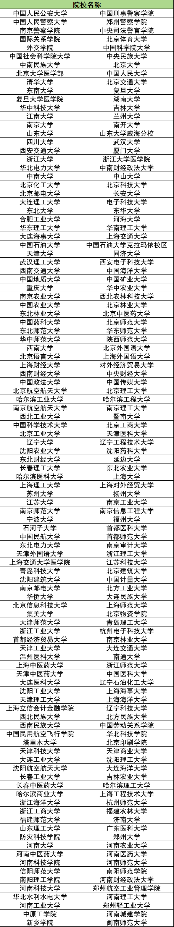 下面附上2026年在河南進(jìn)行國家專項計劃招生的214所院校名單: