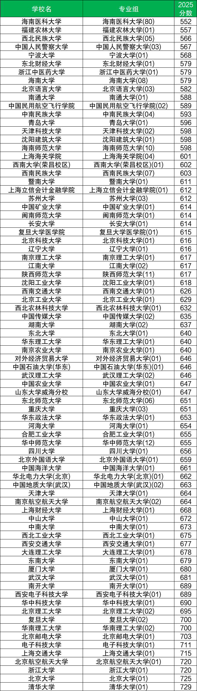 院校分?jǐn)?shù)線及專業(yè)組見下表(需滑動(dòng)查閱):
