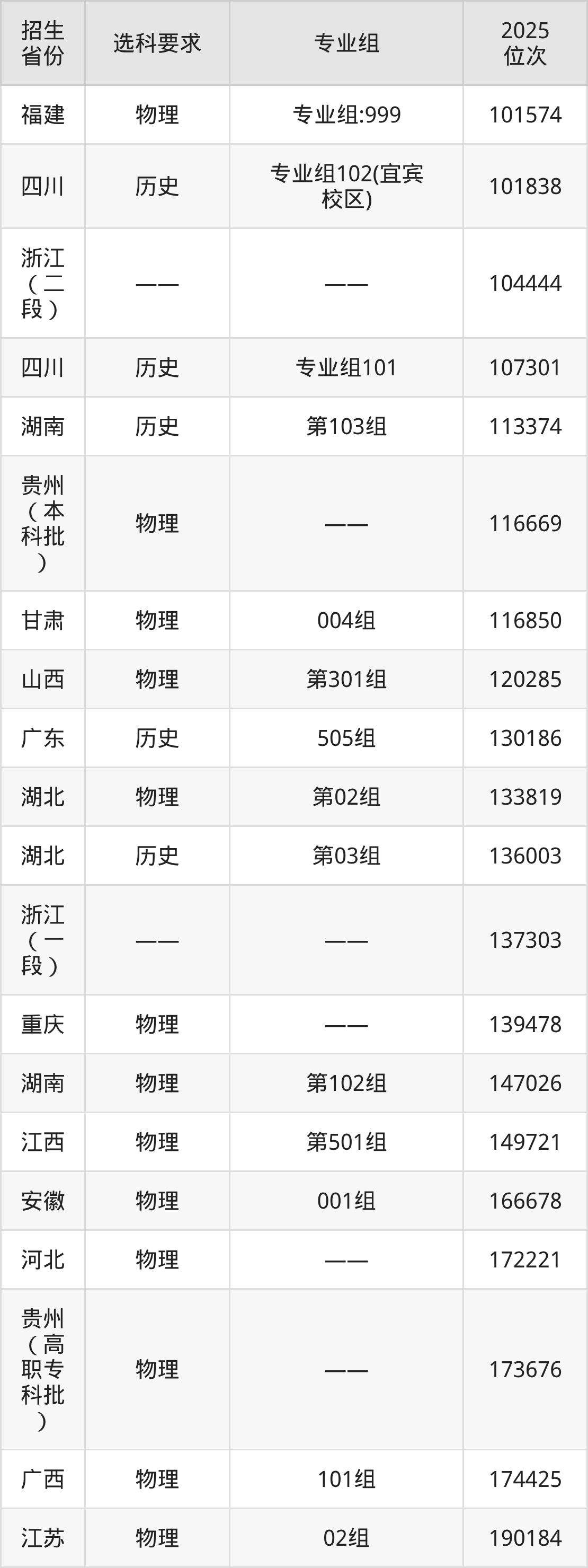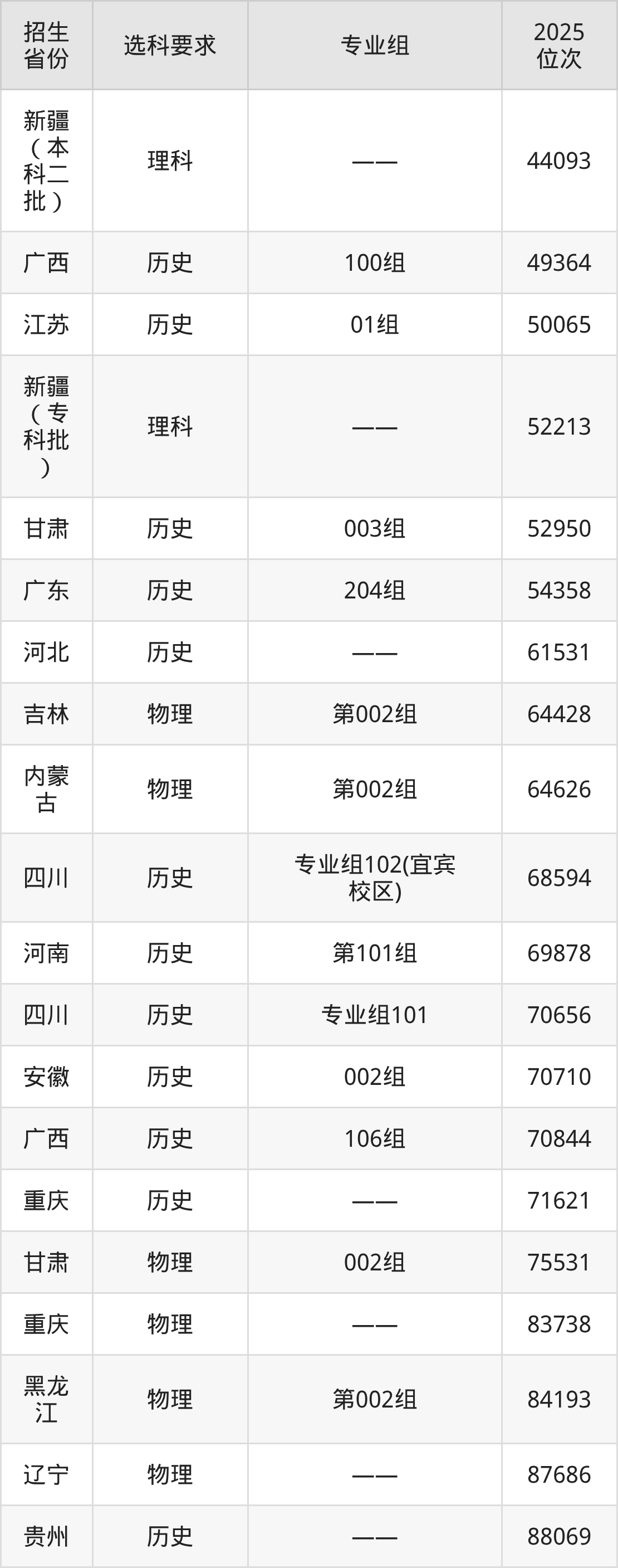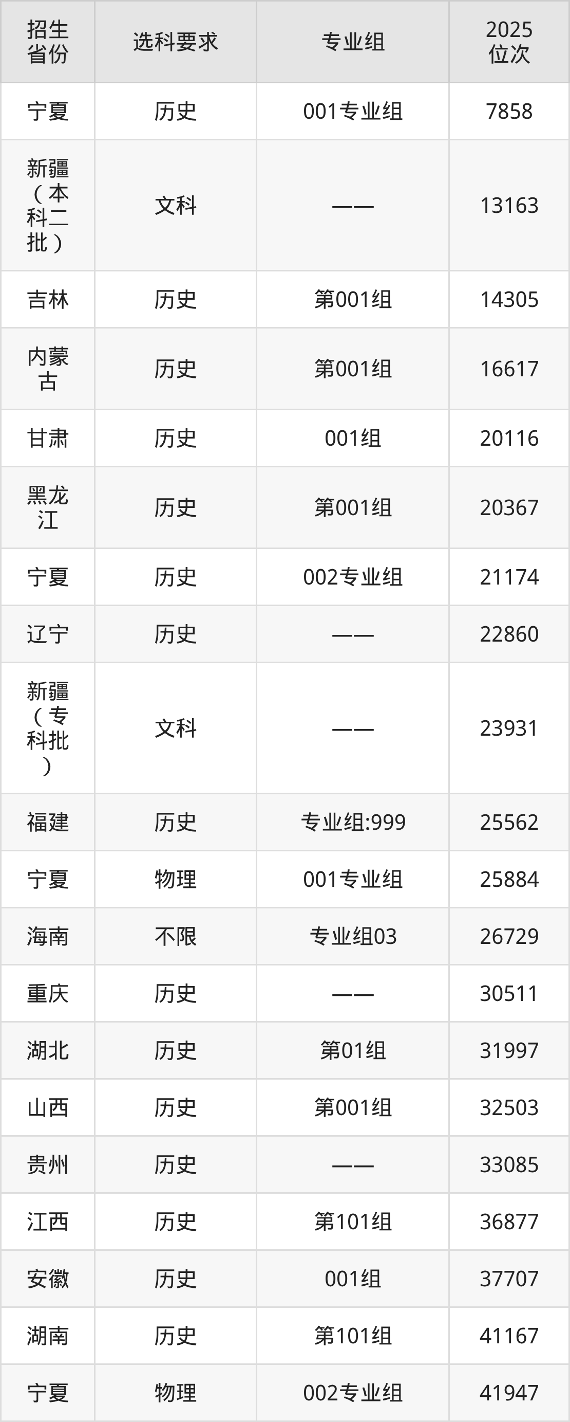 成都外國語學(xué)院2025年在全國各省的位次差異較大,最高位次是7858位(寧夏歷史類)、最低位次是364396位(山東)。各省具體位次請看下圖: