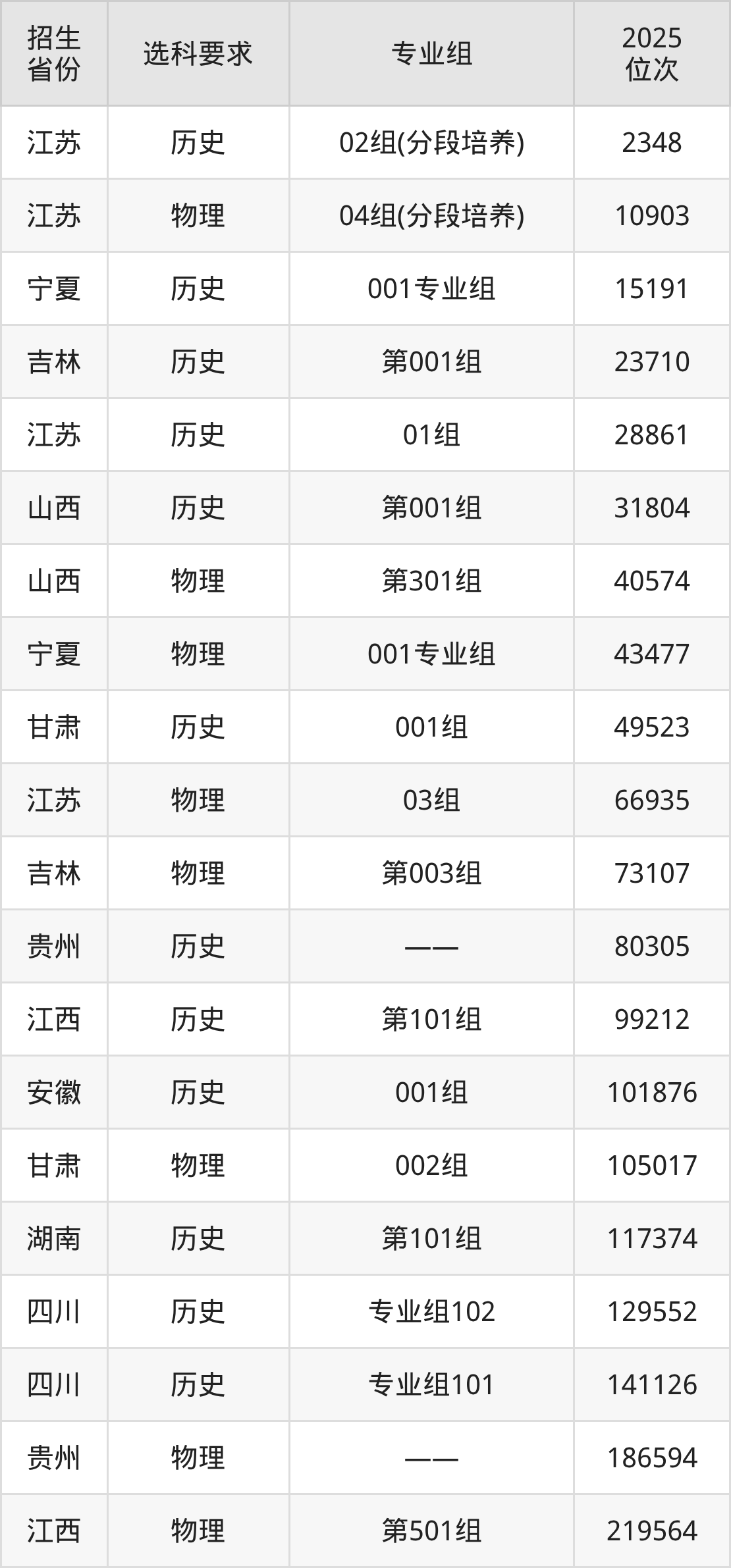 常州紡織服裝職業(yè)技術(shù)學(xué)院2025年在全國(guó)各省的位次差異較大,最高位次是2348位(江蘇歷史類(lèi))、最低位次是498811位(山東)。各省具體位次請(qǐng)看下圖: