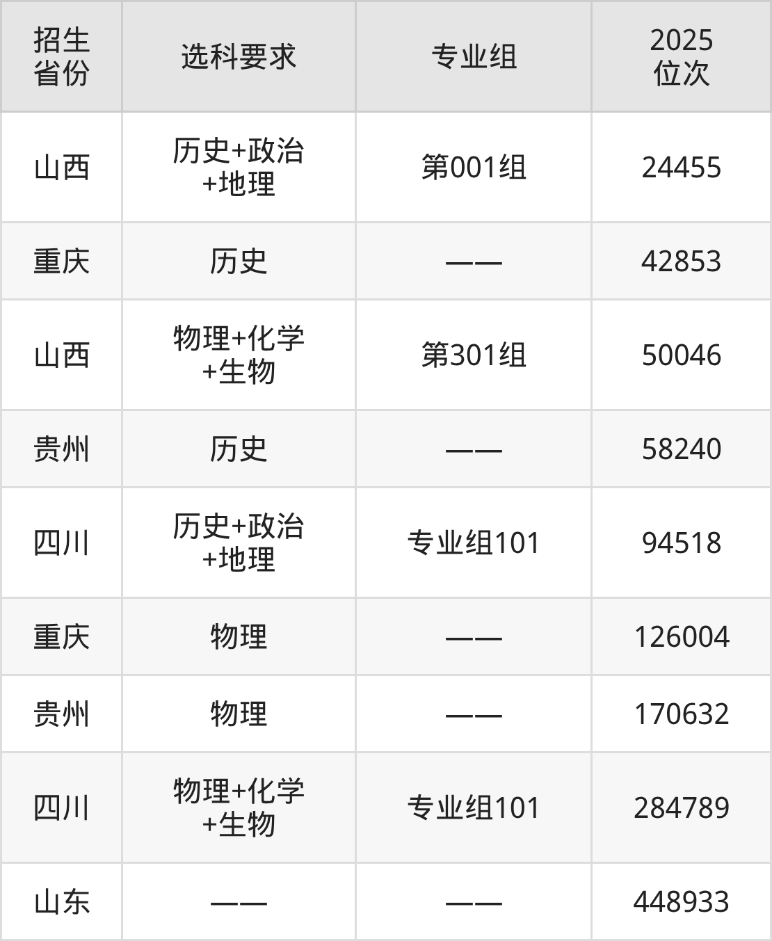 保山中醫(yī)藥高等??茖W校2025年在全國各省的位次差異較大,最高位次是24455位(山西歷史類)、最低位次是448933位(山東)。各省具體位次請看下圖: