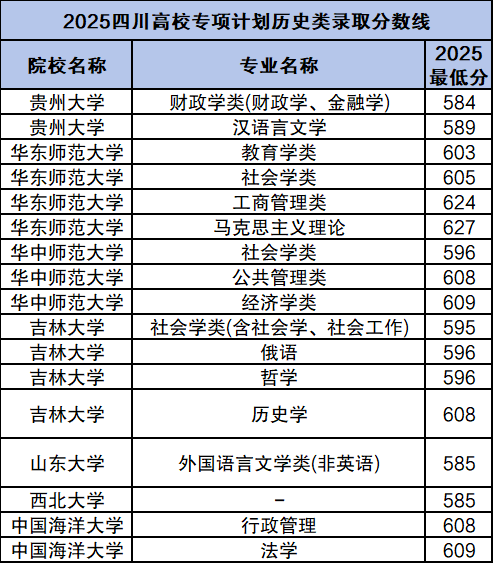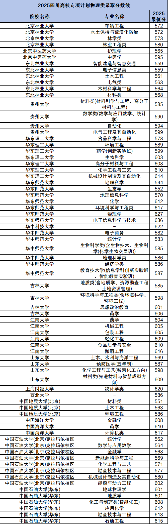 目前能查詢到的四川最新公開高校專項計劃錄取分數(shù)線表為2025年數(shù)據(jù),2026屆考生可暫做參考(不完全統(tǒng)計):